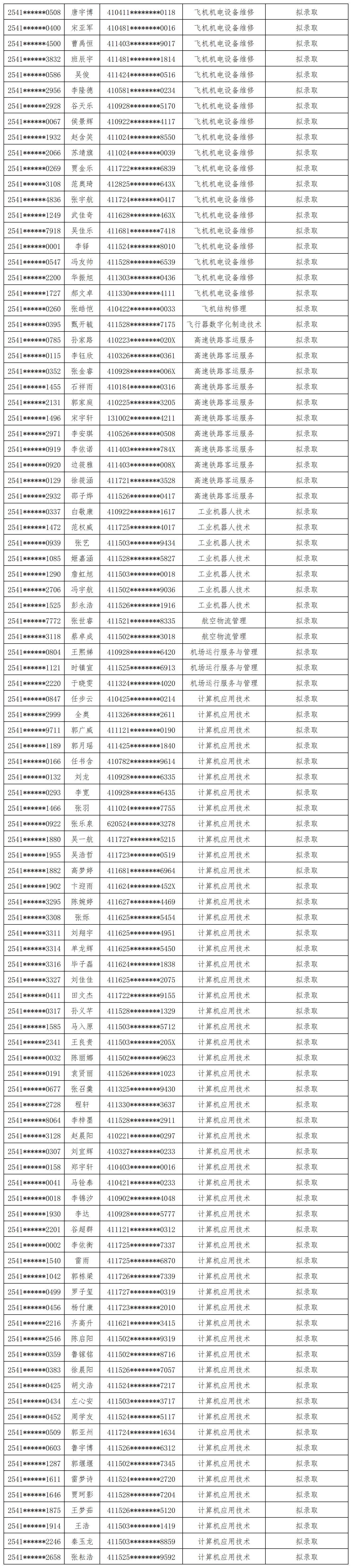 3.拟录取结果公示如下: