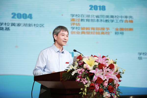 孔建益校长代表学校向全体参会嘉宾表示热烈欢迎,从“三因五维”特色育人模式、“五个武工商”特色育人品牌等方面介绍了学校的办学特色和成果。他介绍,学校坚持立德树人根本任务,不断建强学科专业,获批国家级一流本科专业建设点4个、省级一流本科专业建设点12个、省级优势特色学科群2个,国家级一流本科课程5门、省级一流本科课程43门,一流专业和课程建设水平位居全国同类高校前列、全省同类高校首位;积极响应国家绿色化、数字化发展战略,紧密对接湖北省“51020”产业布局,持续推进专业与产业行业企业的深度融合、协同育人,获中国民办教育发展大会优秀办学案例。同时,学校积极打造“温暖武工商”,对学生严管厚爱,实施严格的教育管理,增强学生学习自律性,打造“校长直通车”平台做到生有所呼、校有所应,让学生更好地成长成才。
