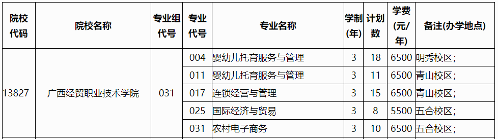 广西经贸职业技术学院2025年高职单招批第一次征集计划信息表广西经贸职业技术学院2025年高职单招批第一次征集计划信息表