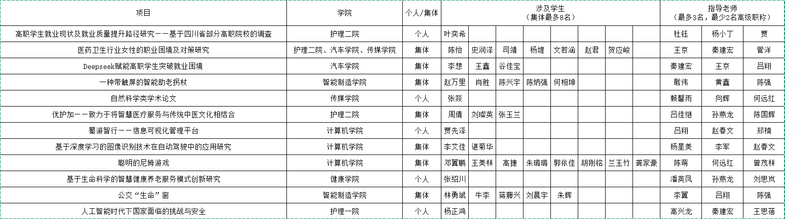 经专家线下评审,最终3个项目获得一等奖,4个项目获得二等奖,5个项目获得三等奖,10个优秀奖。按照《关于举办第十八届“挑战杯”四川省大学生课外学术科技作品竞赛的预通知》要求,我校省赛可推报12件作品。按照校赛决赛得分排名高低,结合我校实际情况,现将推报名单公示如下: