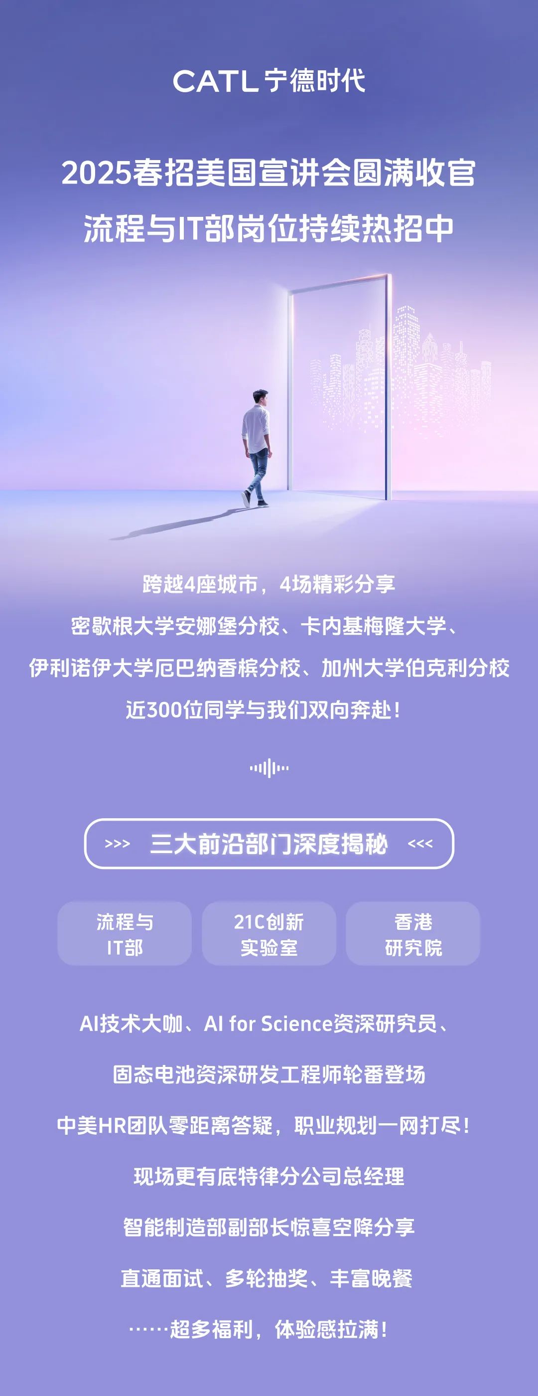 宁德时代2025春招美国宣讲会圆满收官!流程与IT部岗位持续热招中