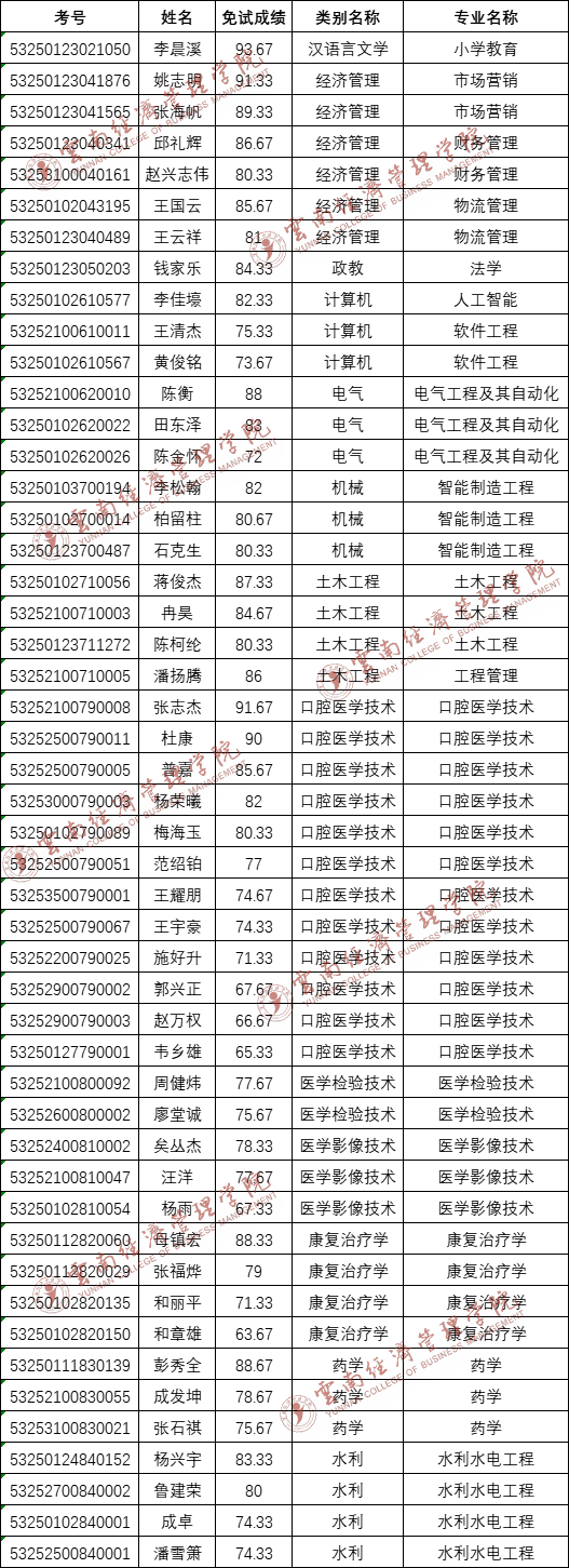 按照《云南省教育厅关于印发2025年普通高校专升本统一考试和免试招生工作办法的通知》相关规定,学校现将2025年专升本免试批次预录取名单予以公示。