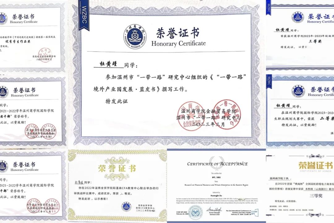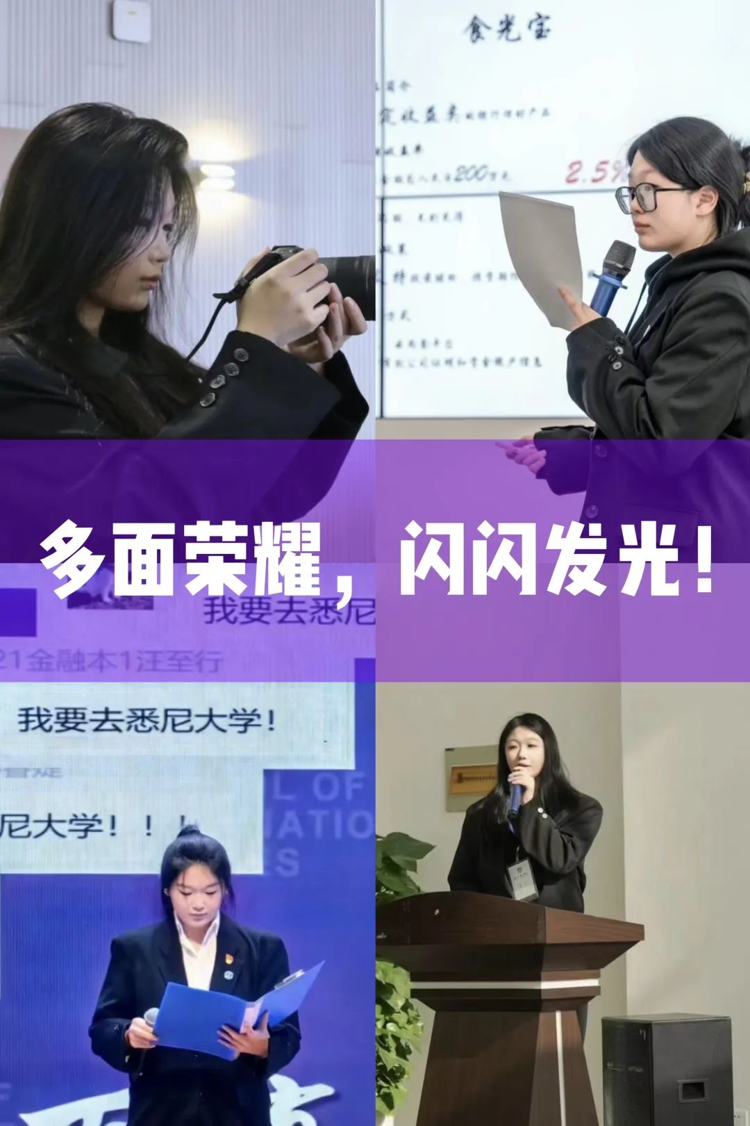 她还是科研佼佼者、实习达人与竞赛先锋,以实际行动绘就追光篇章,成为同学心中的领航者。她独立撰写论文《Rresearch on Financial Resources and Private Enterprises in the EasternRegion》获CONF-BPS国际会议发表,背后是无数个日夜的深耕细作。参与《“一带一路”蓝皮书》撰写,对马中关丹、中国—东盟北斗科技城产业园的研究精准深刻。实习于金汇五金、浙江产权交易所及成都创业邦,历经投融资、综合金融、数据等部门,每段经历都拓宽了她的金融视野。在竞赛战场上,她同样大放异彩。各种各样类型的赛事中均有她的身影,并屡获佳绩。无论是创意营销大赛还是跨境电商大赛,她都展现出了出色的能力和创新思维。她的每一次获奖,都是对她努力的最好证明。