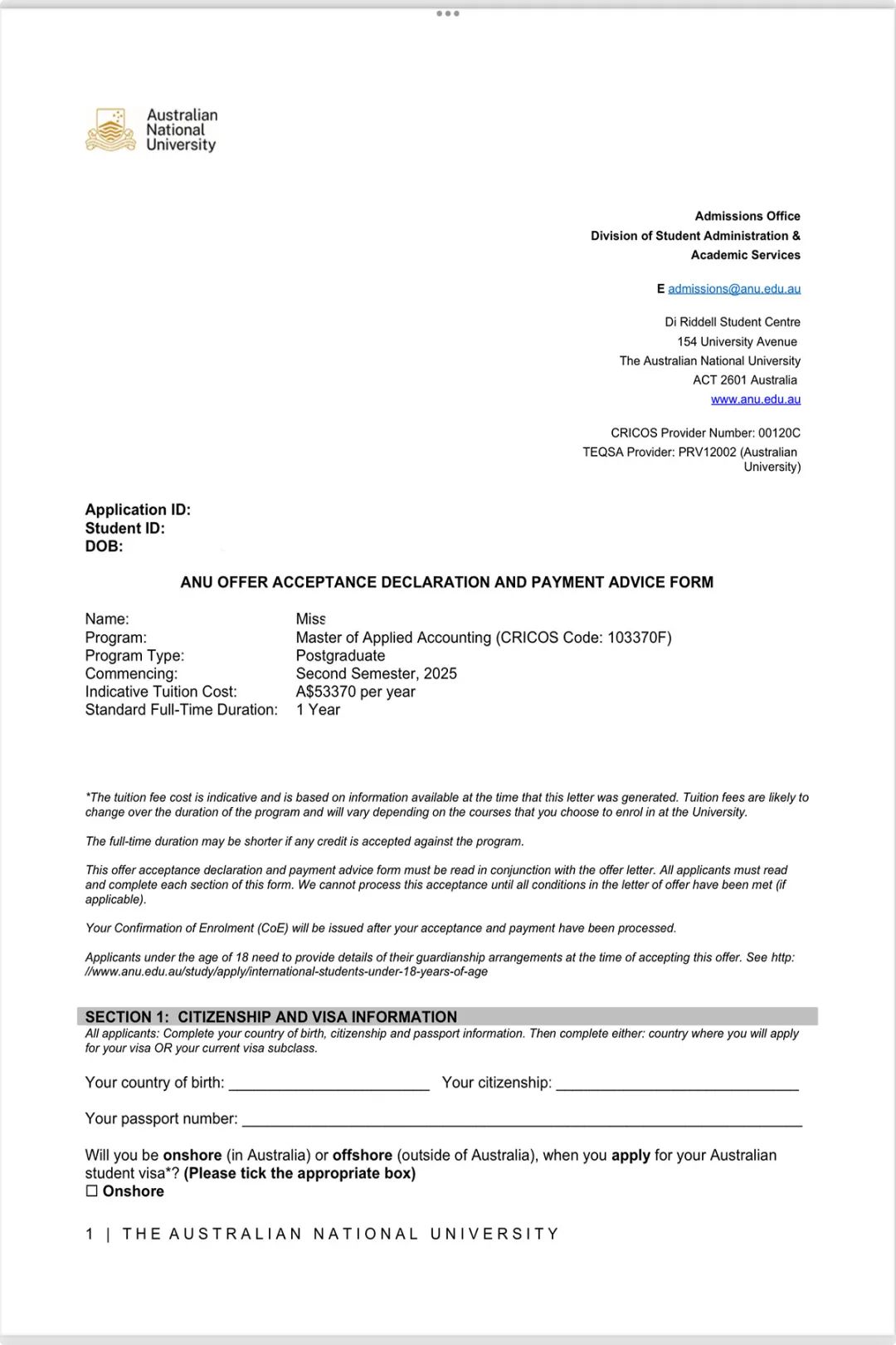 "My journey seemed smooth, but I initially struggled with choosing between countries and majors. My mentors, Ms. Tang Sitong and Ms. Cai Zitong, were instrumental. Ms. Tang helped craft a strategic 'reach-match-safety' school list, while Ms. Cai liaised with Australian admissions teams to secure my spot."