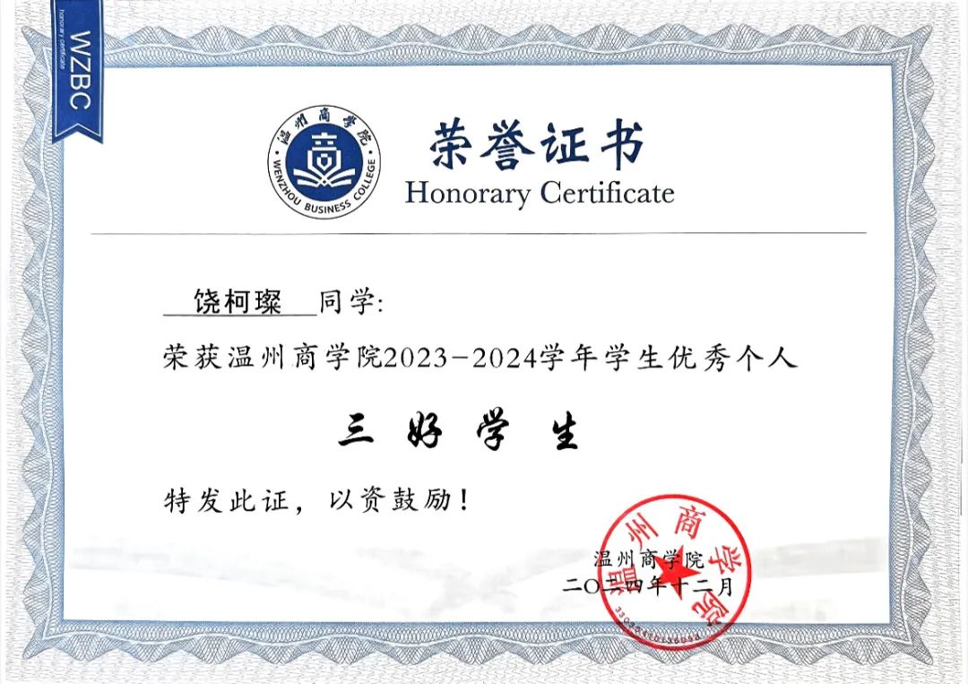 Her four years at Wenzhou Business College have paved the way for global opportunities. To fellow dreamers, she advises: "Stay true to your rhythm, tackle each milestone diligently, and time will reward you."