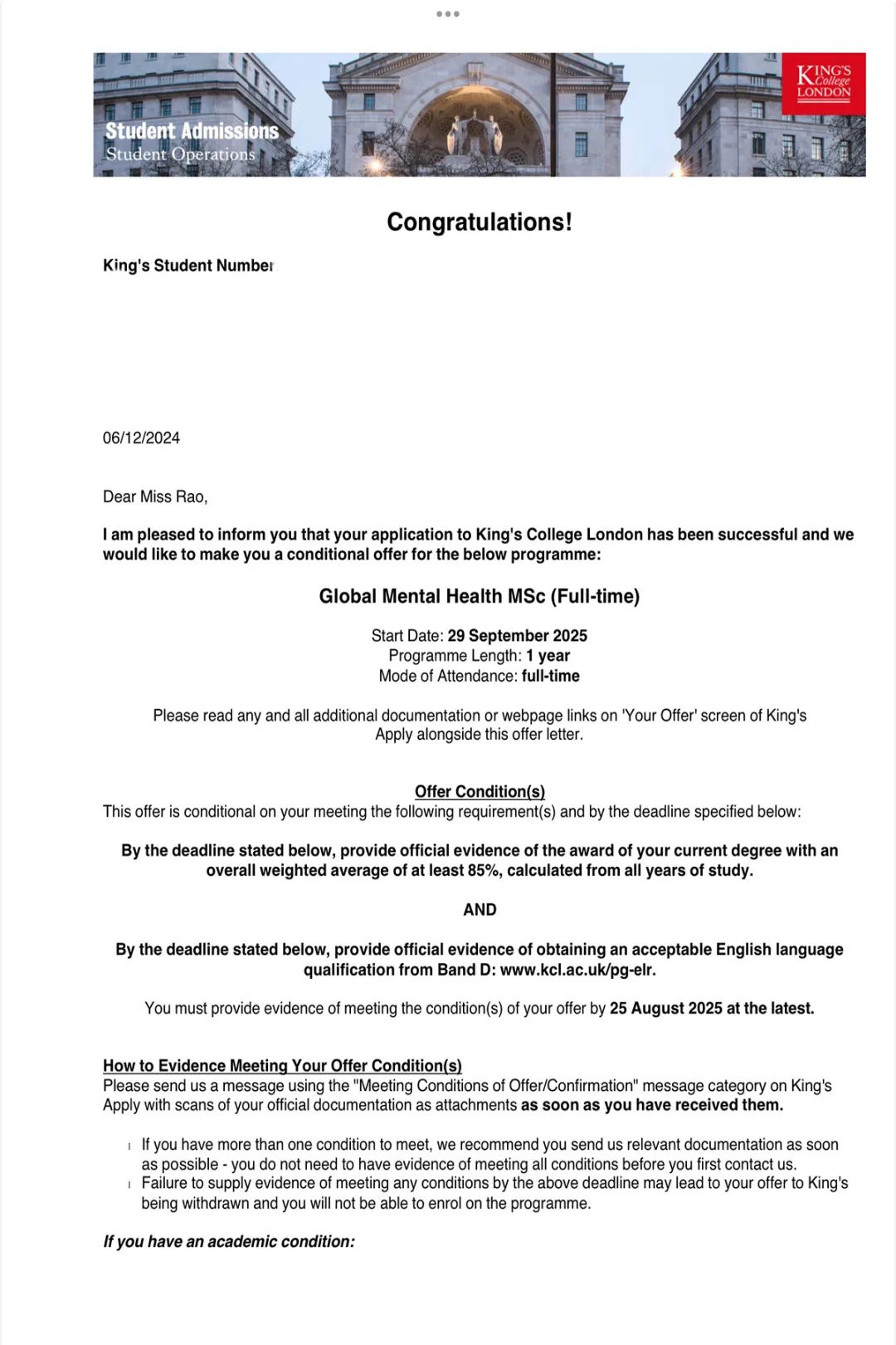 For the 2025 Fall intake, Rao secured offers from all 8 universities she applied to. She attributes her success to three strategies: