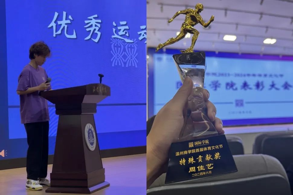 周佳艺,来自国际学院 22 商务英语专 3 班。高考折戟并未打消她的斗志,怀揣初心,她毅然投身校短跑队,自此开启逐梦之旅。两年间,一周六练的高强度训练成为日常,跑道见证着她的蜕变。赛场上,她是当之无愧的焦点,校运会舞台上霸气包揽并蝉联女子 100 米、200 米、4×100 米和 4×200 米冠军,校记录在她脚下一次次刷新;省赛征程里,同样战绩斐然,第八届大学生田径锦标赛甲组女子 100 米季军殊荣加身,还一举斩获浙江省 “优秀运动员” 称号。可这一路,伤病如影随形,瓶颈期仿若荆棘满布,她却始终笃定:“在竞技体育中,伤病是不可避免的,唯有在瓶颈期坚信自己,超越自己,才可以从困难中走出来。一个人在走向成功的道路上,任何风对于他来说都是顺风。” 正是这般信念,支撑她一次次逆风飞扬。