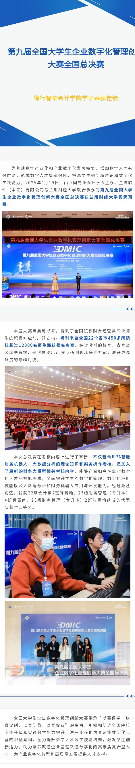 第九届全国大学生企业数字化管理创新大赛全国总决赛——德行智华会计学院学子荣获佳绩