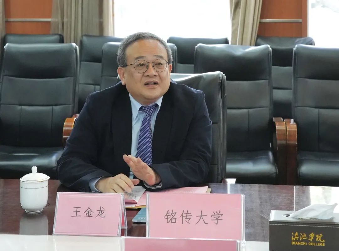 台湾铭传大学副校长王金龙对我校的热情接待表示感谢,并介绍台湾铭传大学的基本情况、区位优势及办学特色。他表示,下一步将与滇池学院开展实质合作,双方将在师生互访、学术交流等进一步强化交流合作,推动两岸高等教育高质量发展。