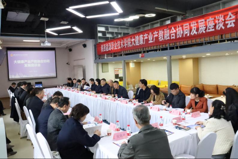 医学康养学院院长任春晓分享了学校康养类专业双高建设和产教融合的经验。随后,进入校企座谈交流环节。企业和医院的领导专家围绕产教融合协同育人机制、校企双元培养模式及就业服务体系等方面畅所欲言,为学校发展提供了宝贵建议,力求为大健康产业培养更多实用人才。