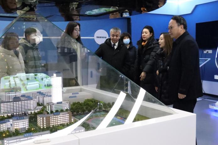 会后,阿巴兹别克·乌卢·拉苏尔一行在朱忠军的陪同下参观了学校煤矿智能开采综合实训室、化工模拟工厂、煤炭清洁利用实训基地、地质陈列室、建筑虚拟仿真基地、智慧矿山实训室、双碳新能源实训室等实训场所。