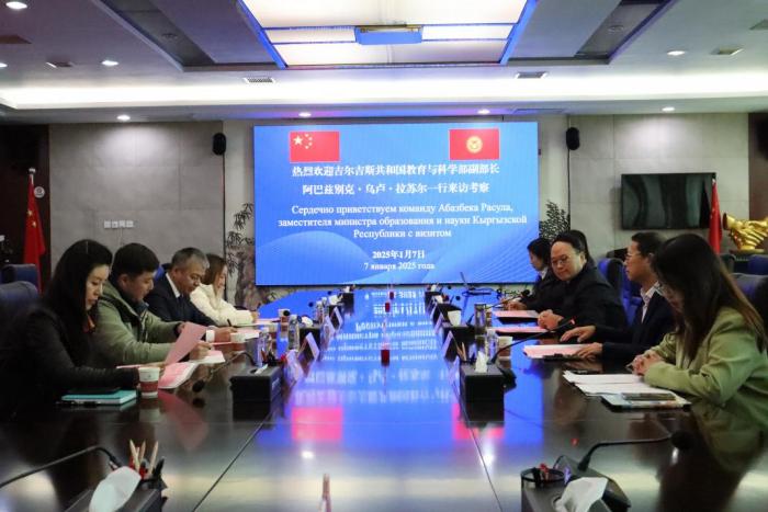 1月7日上午,吉尔吉斯共和国教育与科学部副部长阿巴兹别克·乌卢·拉苏尔一行到我校友好访问、座谈交流。我校党委副书记、校长朱忠军带领外事办、国际交流学院相关工作人员等参加座谈。