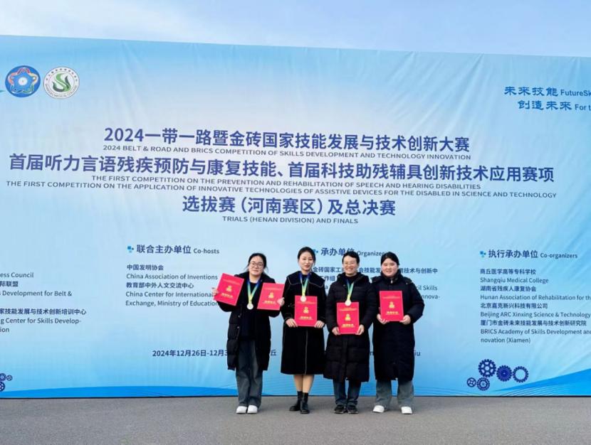 12月28日至12月30日,2024一带一路暨金砖国家技能发展与技术创新大赛暨首届听力言语残疾预防与康复技能全国总决赛在商丘医学高等专科学校顺利举办。赛事汇聚了全国26个省份两个赛道141支参赛队伍,经过激烈的竞争,我校现代康养学院教师何芳梅指导的康复治疗技术专业学生王妍妍在首届听力言语残疾预防与康复技能赛道获国赛二等奖,何芳梅获优秀指导老师奖;现代康养学院教师邢少娜和张妤获首届听力言语残疾预防与康复技能职工组三等奖;学校获优秀组织单位奖。