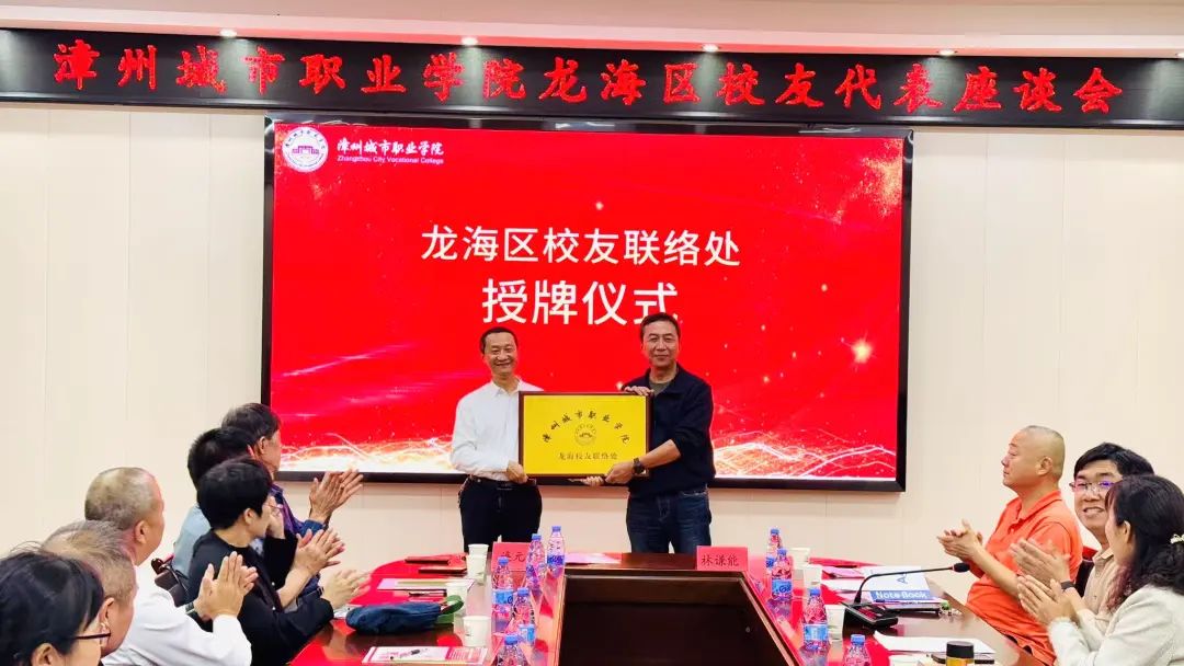 2025年4月26日,漳州城市职业学院龙海区校友联络处成立。学院党委副书记朱镇生为龙海区校友联络处授牌。