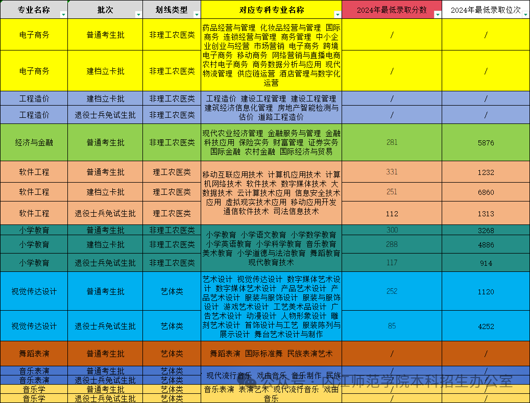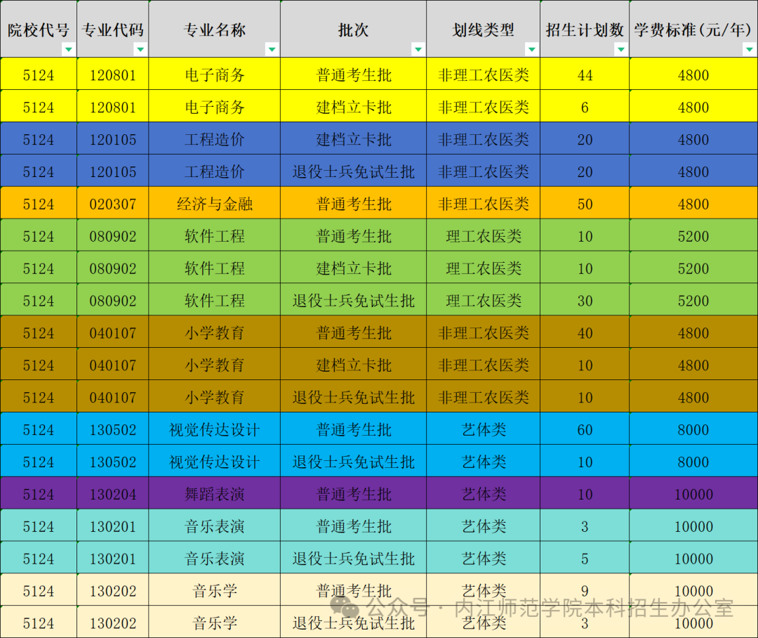 2025年专升本招生计划一览表2025年内江师范学院专升本共有9个招生专业,分别为软件工程50人,工程造价40人,小学教育60人,电子商务50人,经济与金融50人,视觉传达设计70人,音乐表演8人,音乐学12人,舞蹈表演10人,合计350人。
