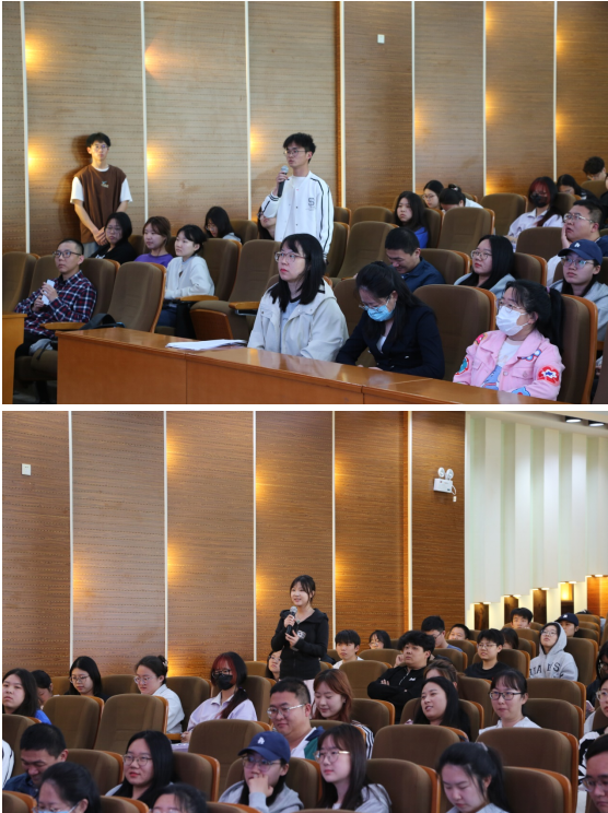讲座现场气氛热烈,师生积极互动,针对学生提出的人工智能对当今大学相关课程的启发,对大学生就业造成的影响,张群教授在教育生涯中的深刻回忆和遇到的重重困难及解决措施等问题,张群教授一一进行耐心解答和深入剖析,回忆自己30年来在教育界的辛勤耕耘;学术生涯中遇到的课题攻坚,文章创作等困难,张教授感慨万千,并以“要坚定目标并为之奋斗,勤恳做事,踏实做人”作为寄语表达对学生们的殷殷期望。现场思维碰撞火花不断,学术氛围馥郁灵动,轻松与活泼相得益彰,气氛和洽而怡然。