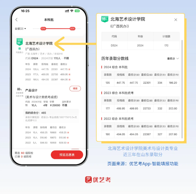 首选我们需要清楚山东省美术与设计类综合分投档公式为:文化成绩×50%+专业成绩×750/300×50%,也就是说,我们的文化分在380分,专业分在220分左右。一般来说,465分可报考的院校以民办院校居多。