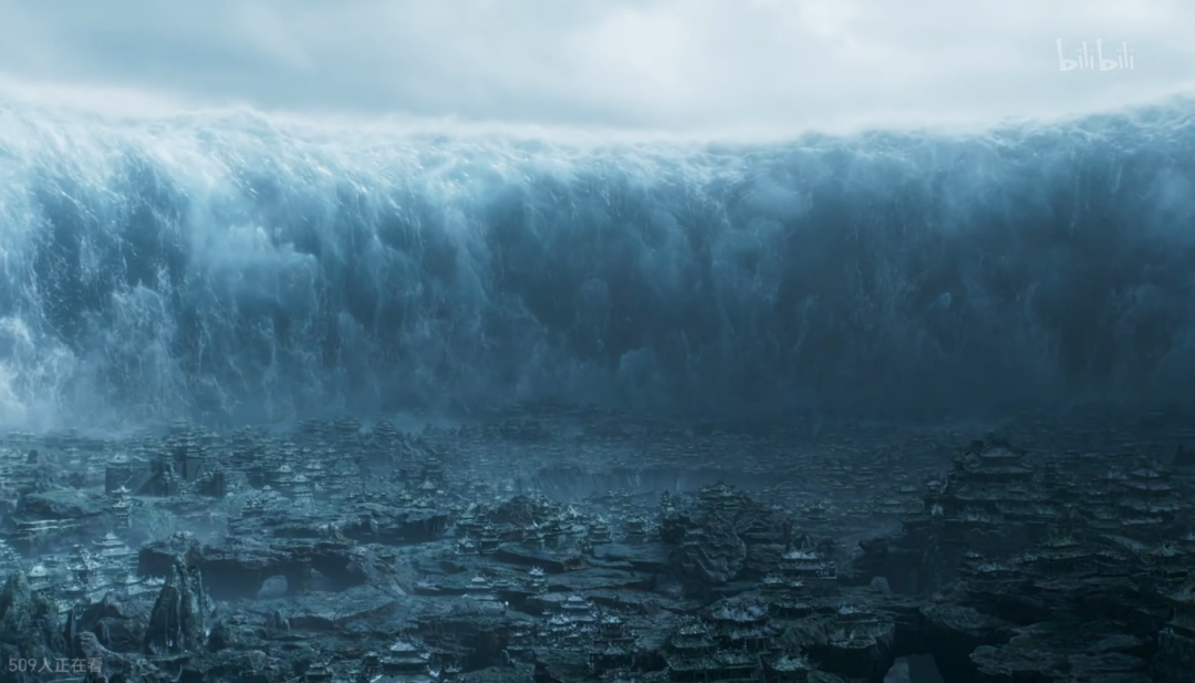 对于我个人而言,我负责制作的画面中具有很大难度的是龙宫遗址中的镜头和海水退去后出现的那个巨大的龙宫遗址,因为很多的剧情发展都要在这个画面上进行。这一部分内容,查阅大量的参考资料,和团队沟通方案,我们就足足做了十几版方案,那段时间的工作强度给我留下了很深的印象。失败是家常便饭,一次一次的方案被否定,没时间失落更没时间遗憾,一旦这条路走不通,团队第一时间开会商讨如何改进方案,饺子导演也会将自己的意见反馈给我们,帮助我们明确修改和完善的方向,从而突破难题。