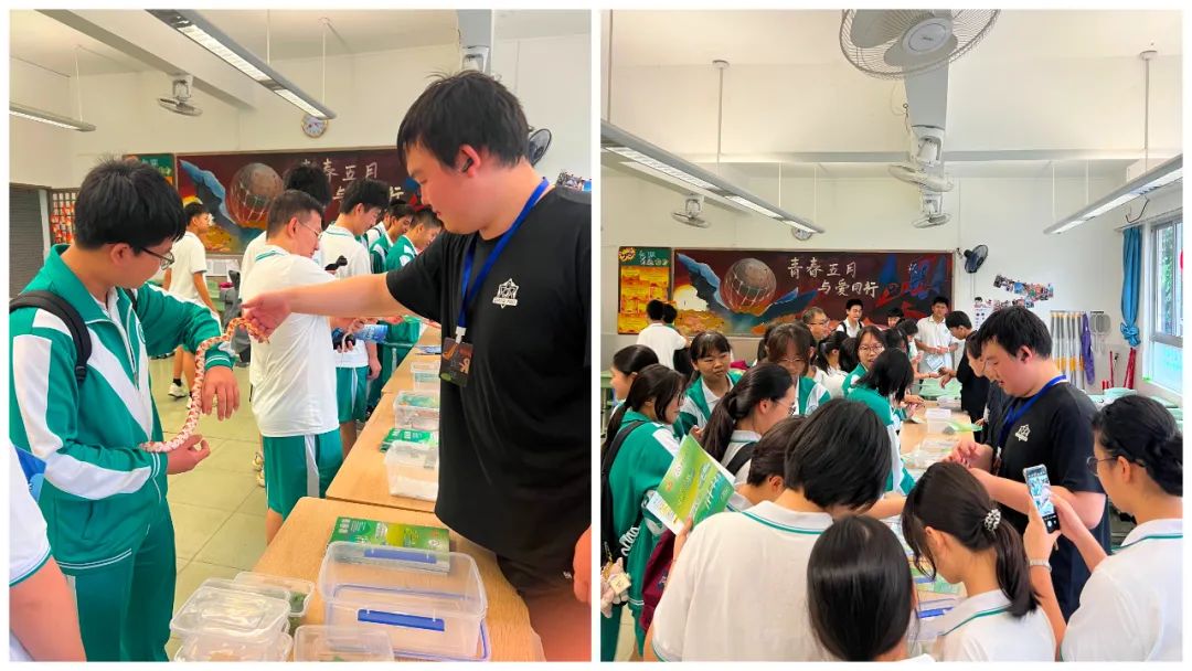 4月25日,我校师生受邀参加广州第一一三中学科技节活动。动物科学学院党委副书记郭灼带队,师生携带宠物蛇、蜘蛛、肥尾守宫、蚕茧等活体动物标本,通过沉浸式互动体验,向中学生们展示了现代动物科学的魅力。
