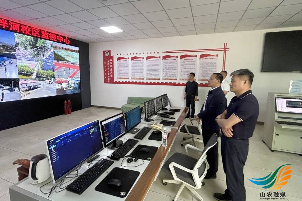 山农融媒4月30日讯“五一”劳动节前夕,学校党委常委、副校长李广松,党委常委、副校长周玉玺分别带队深入学校重点场所、重点区域,全面排查风险隐患,现场部署假期期间校园安全管理工作。