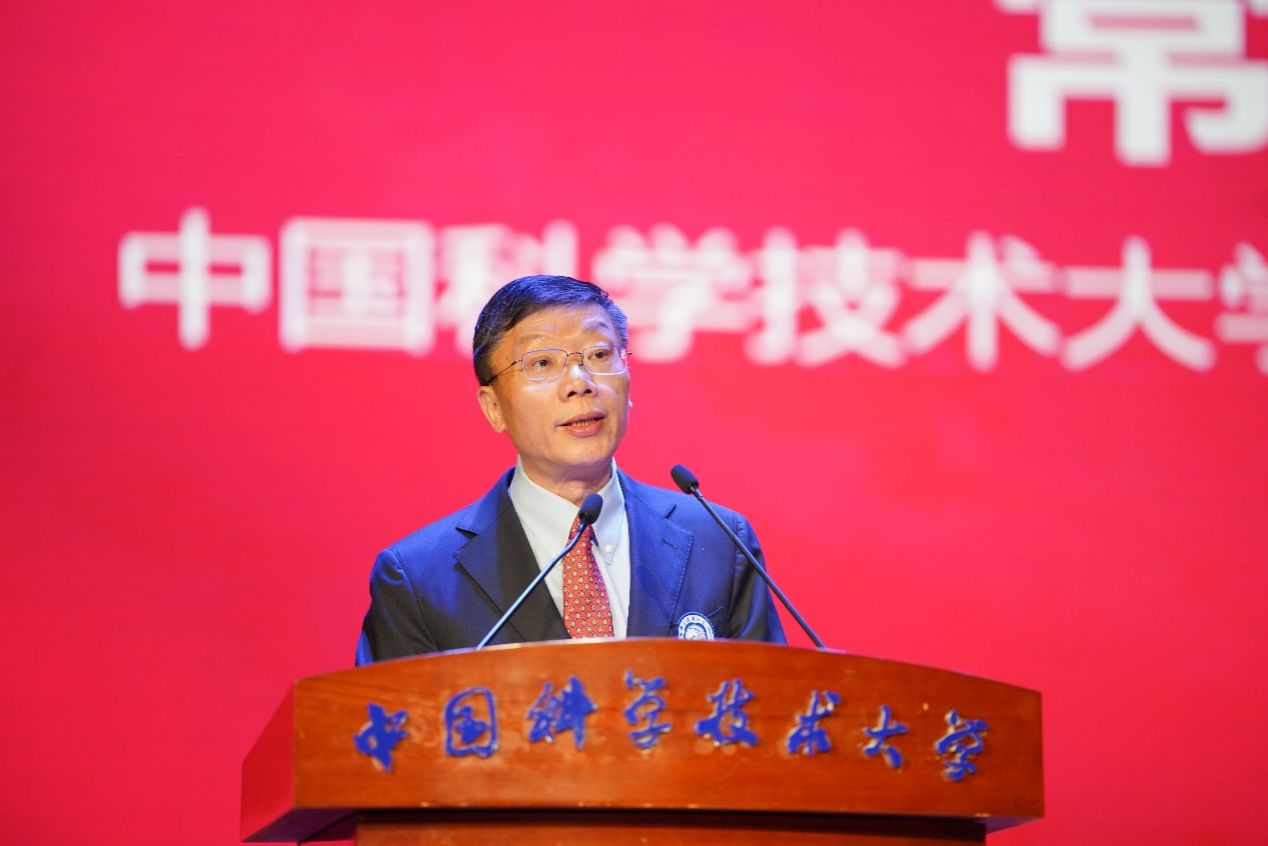 常进代表中国科大全体师生,向获奖的35位学子致以最热烈的祝贺。在致辞中,常进先后讲述了我校化学物理系首任系主任郭永怀先生,首届郭沫若奖学金获得者、中国科学院院士吴奇,第十二届郭沫若奖学金获奖者杨培东教授,校友代表杜文亮教授等人爱国奉献、勇攀科技高峰的故事,并寄语同学们要以“红专并进”的精神校准人生航向、以“理实交融”的务实锤炼创新利刃、以“追求卓越”的勇气攀登科学高峰。常进强调,4月26日是习近平总书记考察中国科大九周年,广大同学们要时刻铭记,只有将自己的命运与国家民族的命运联系在一起,才能在最广阔的舞台上书写出独属于新时代青年的青春华章。