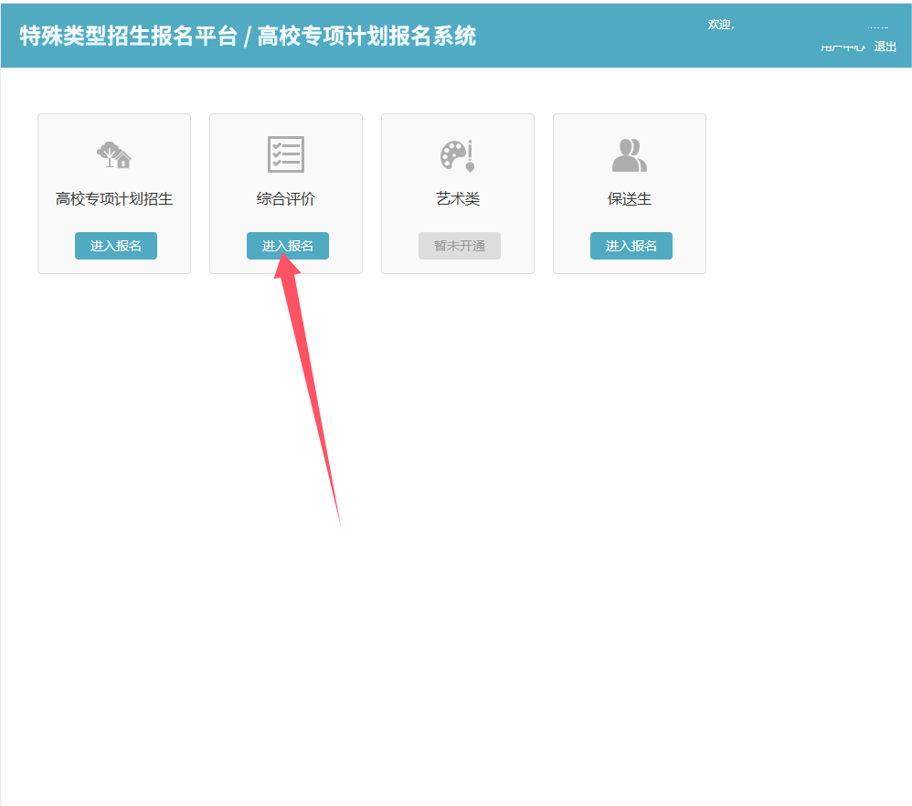1、注册登录后需要再次进行报名登录,选择综合评价,即可进入正式报名界面。