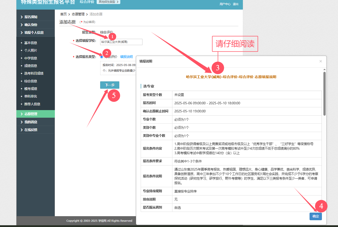 2025年5月6日9:00-5月10日18:00,哈尔滨工业大学(威海)2025年山东省综合评价招生报名端口开放。为了让广大考生及家长能够准确、高效地完成综合评价招生报名工作,下面将通过图文结合的方式为大家讲解报名流程及相关注意事项。