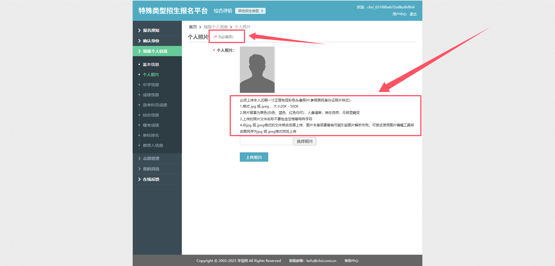 5、请仔细阅读个人照片要求,将正确格式、尺寸的图片上传后,进行下一步。