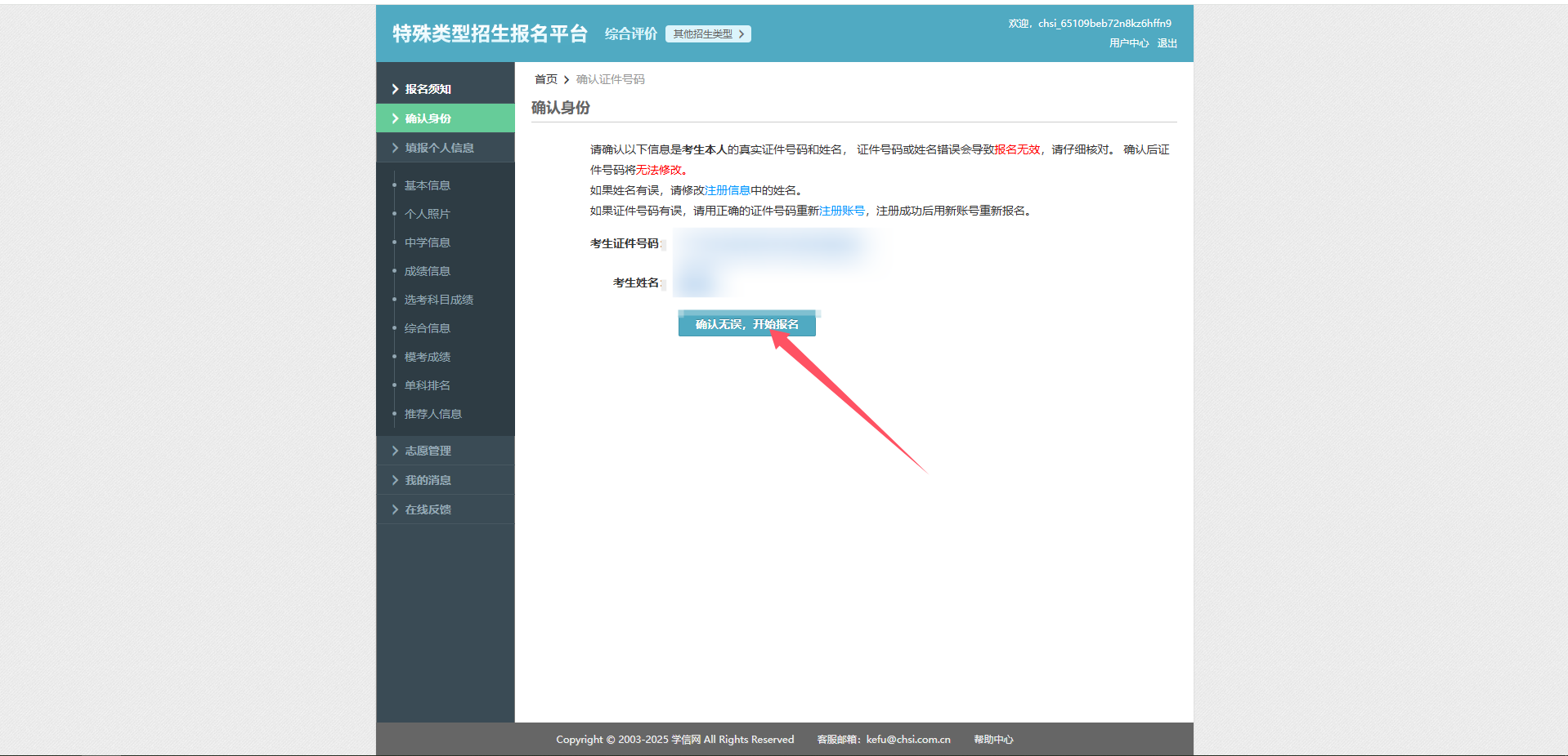 3、请仔细阅读提示,确认本人信息,信息错误会导致报名无效,点击确认无误后身份信息将无法再修改,请一定认真核对身份信息。