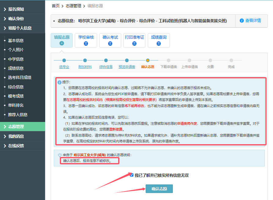 4、在“预览申请表”页面,确认无误后即可“确认志愿”和“下载申请表”。