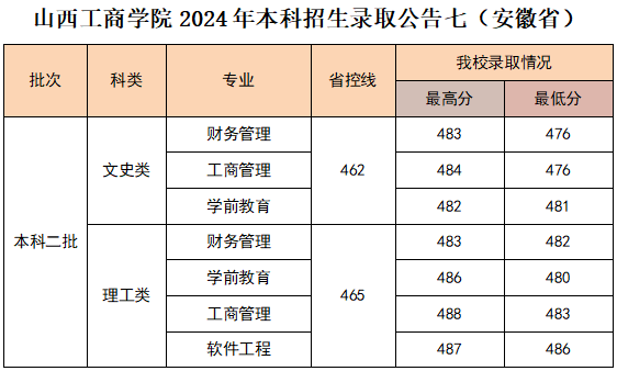 我校2024年安徽省普通本科批录取工作已结束,考生可登录“山西工商学院”官网,在“录取查询”中输入姓名和考生号进行查询。录取通知书预计8月上旬开始邮寄,请各位考生注意查收!(录取结果最终以本省招生考试网公布信息为准)