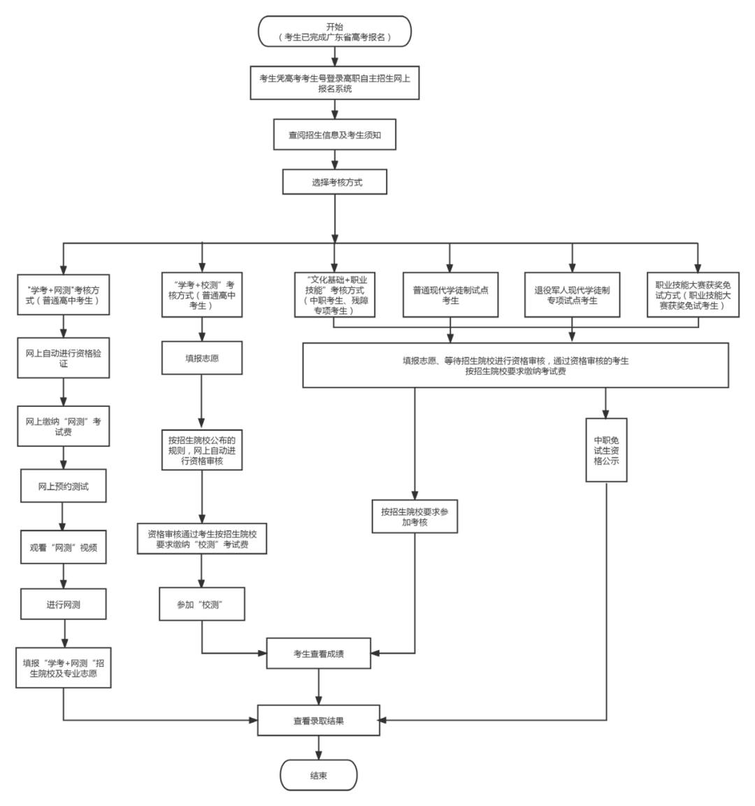 1.广东省自主招生录取实行网上录取,按照“学校负责、招办监督”原则进行。学校在符合高职自主招生报考条件、考核成绩达到学校划定的各招生专业录取最低分数线的考生中,根据考生所填报专业志愿及专业的招生计划,按考生合成总分从高分到低分录取。考生总分相同时,按职业技能考核成绩从高分到低分择优录取;职业技能考核成绩相同时,按专业综合理论考核成绩从高分到低分择优录取(现代学徒制则按文化素质考核成绩从高分到低分择优录取);专业综合理论考核成绩相同时,按综合文化知识考核成绩从高分到低分择优录取。