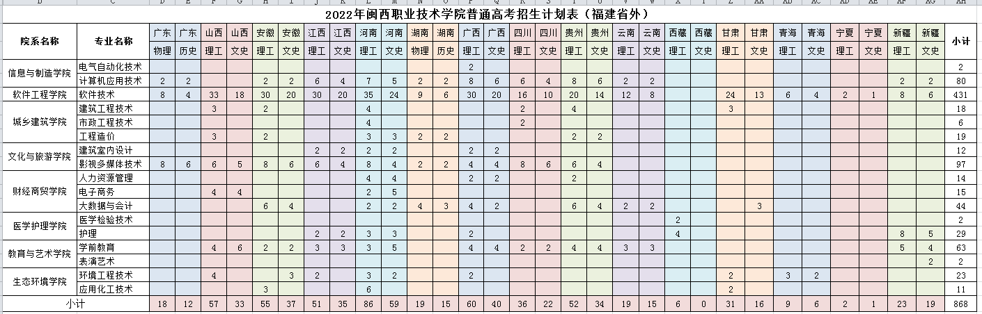 2022年闽西职业技术学院高考招生计划(福建省外)