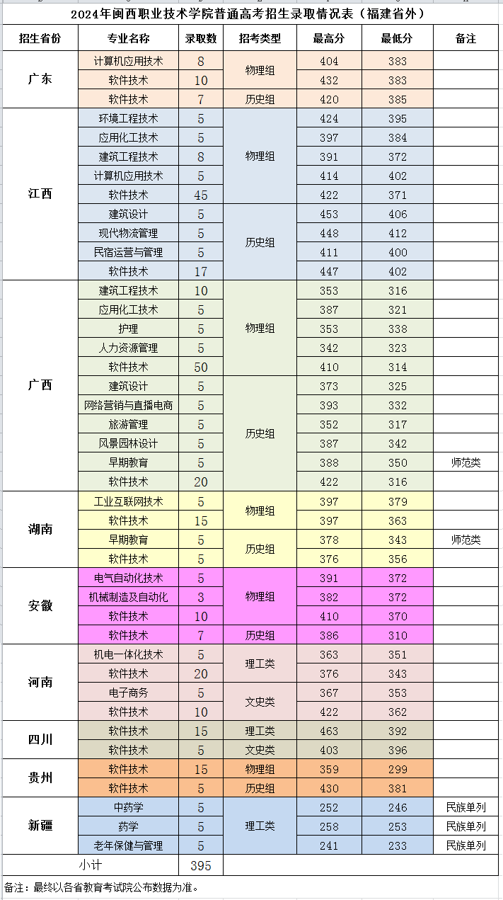 2024年闽西职业技术学院高考录取分数(福建省外)