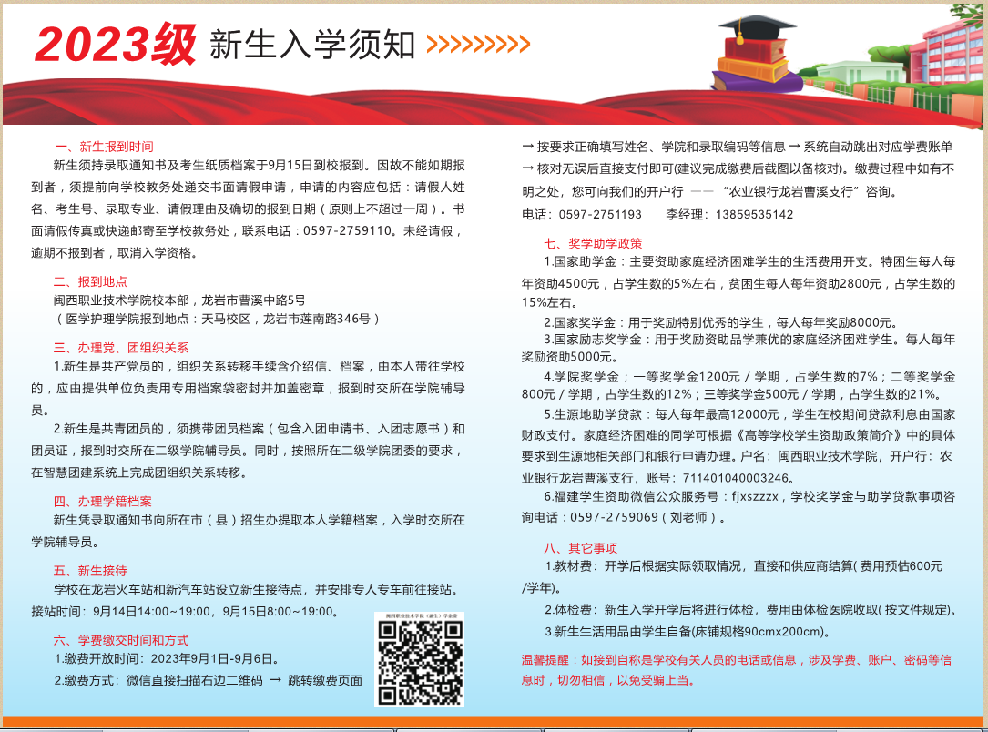 2023年闽西职业技术学院高考录取新生入学须知