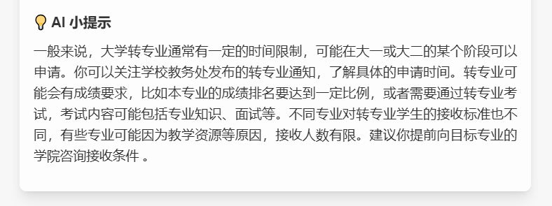 复杂问题智能拆解:面对复杂的报考策略、专业选择困惑以及未来规划等难题,小派能够通过深度分析和智能推理,给出详细、全面且个性化的解决方案,帮助考生和家长做出更明智的决策。