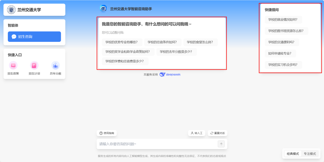 别担心,兰州交通大学接入Deepseek