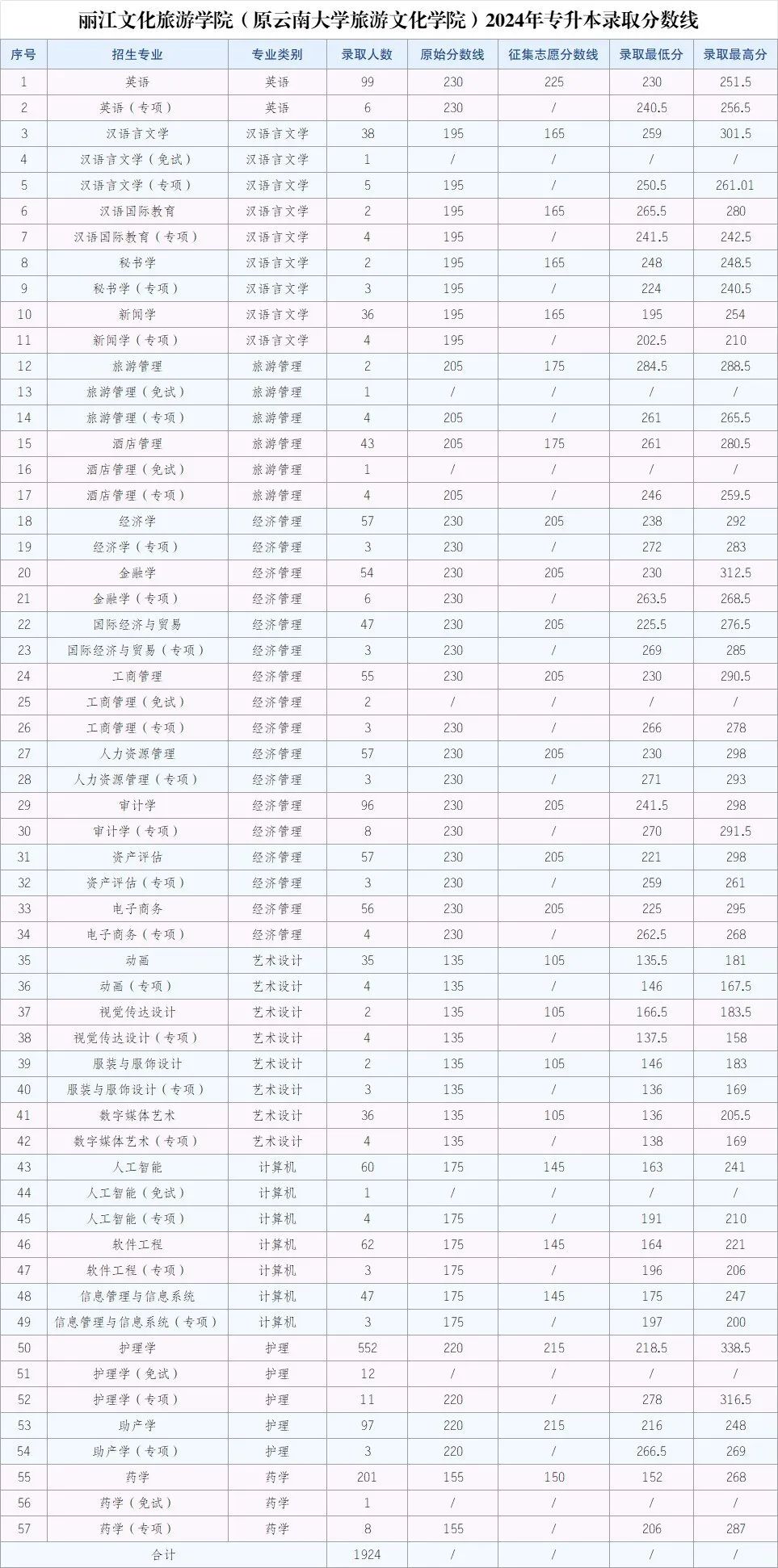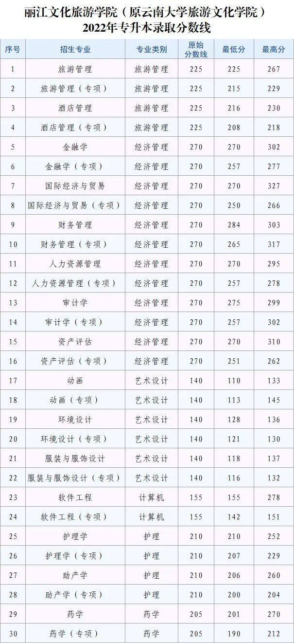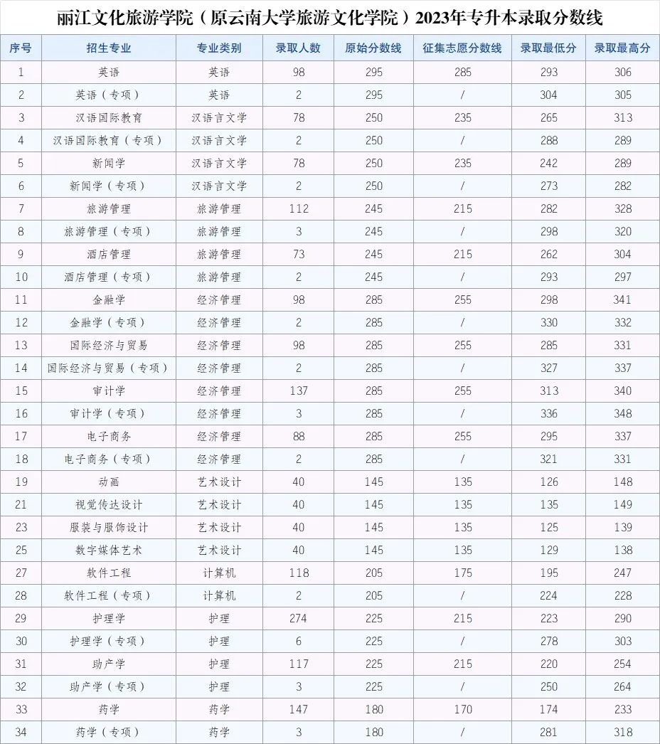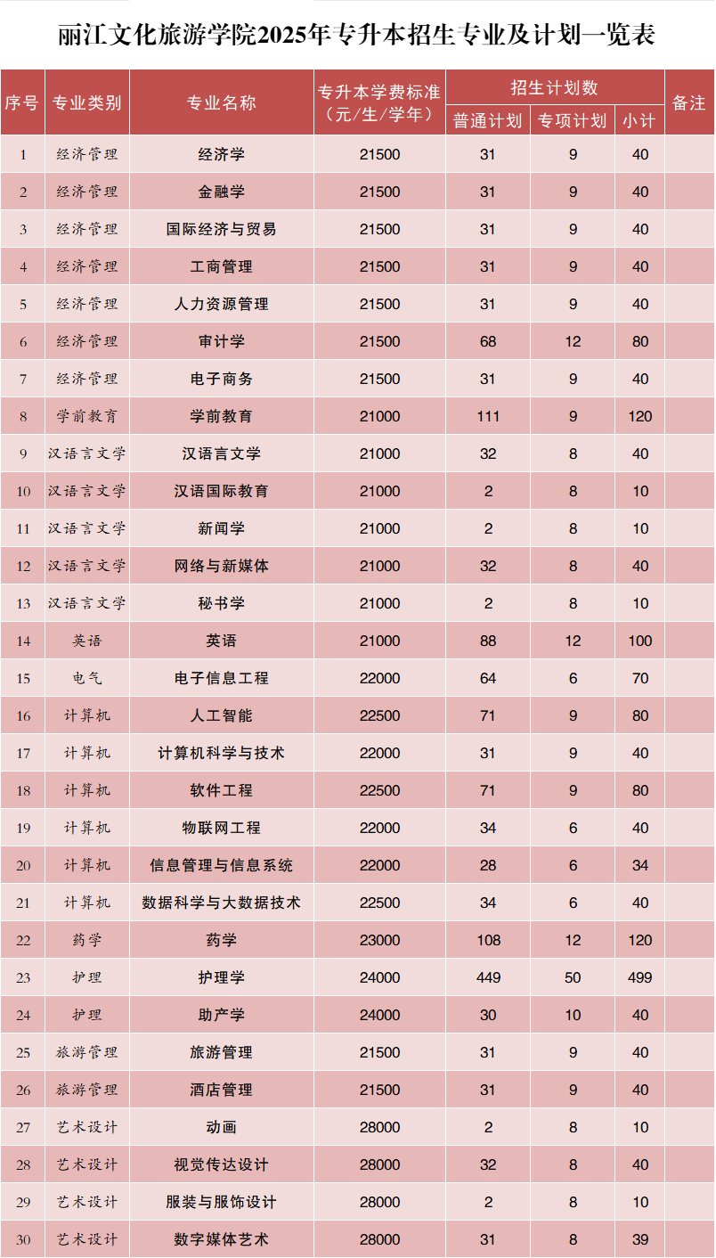 丽江文化旅游学院2025年专升本招生专业及对应可报考的专科专业情况一览表