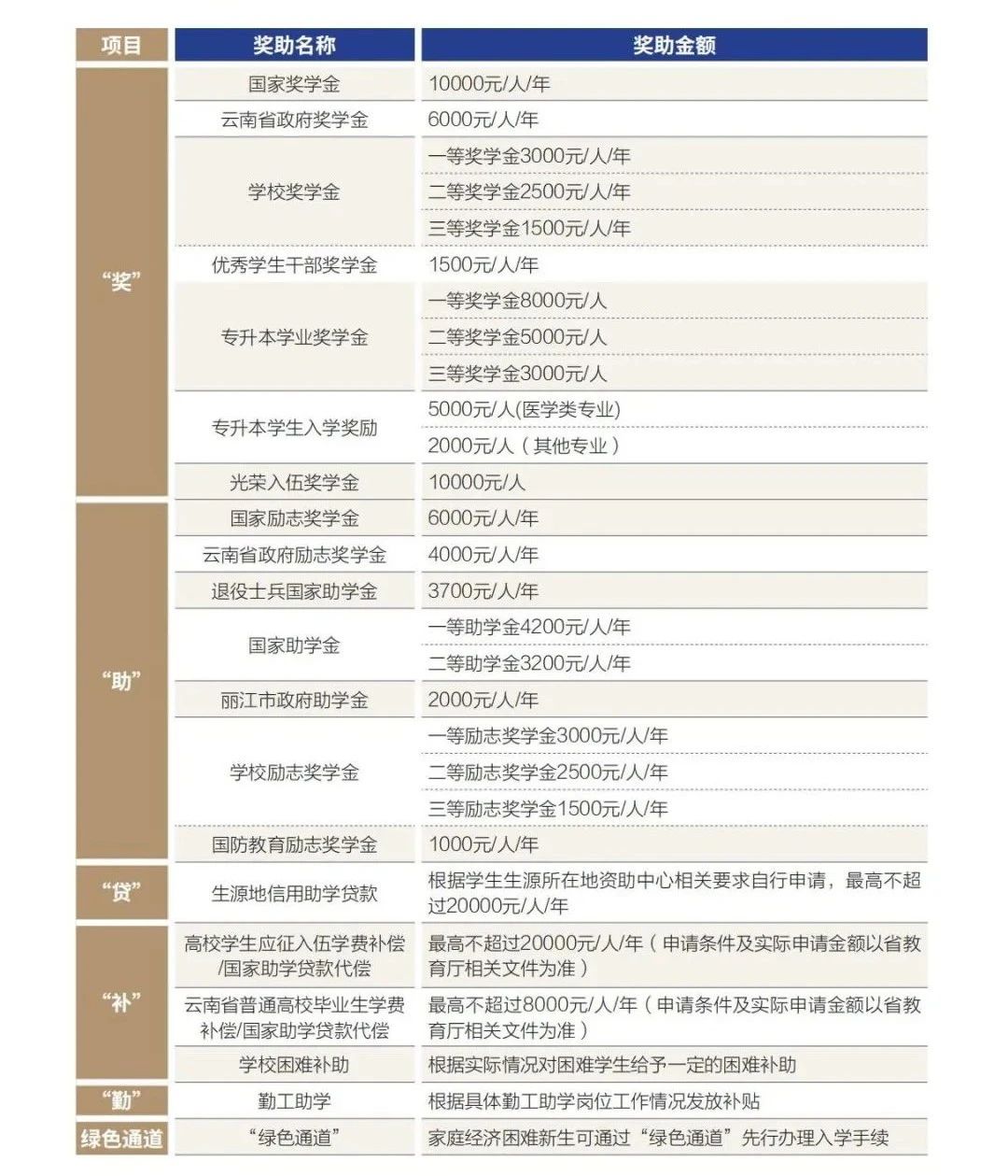 丽江文化旅游学院自2020年起,单独设立专升本学生专项资助奖励体系,对学业优秀的学生和贫困学生进行奖励和资助。