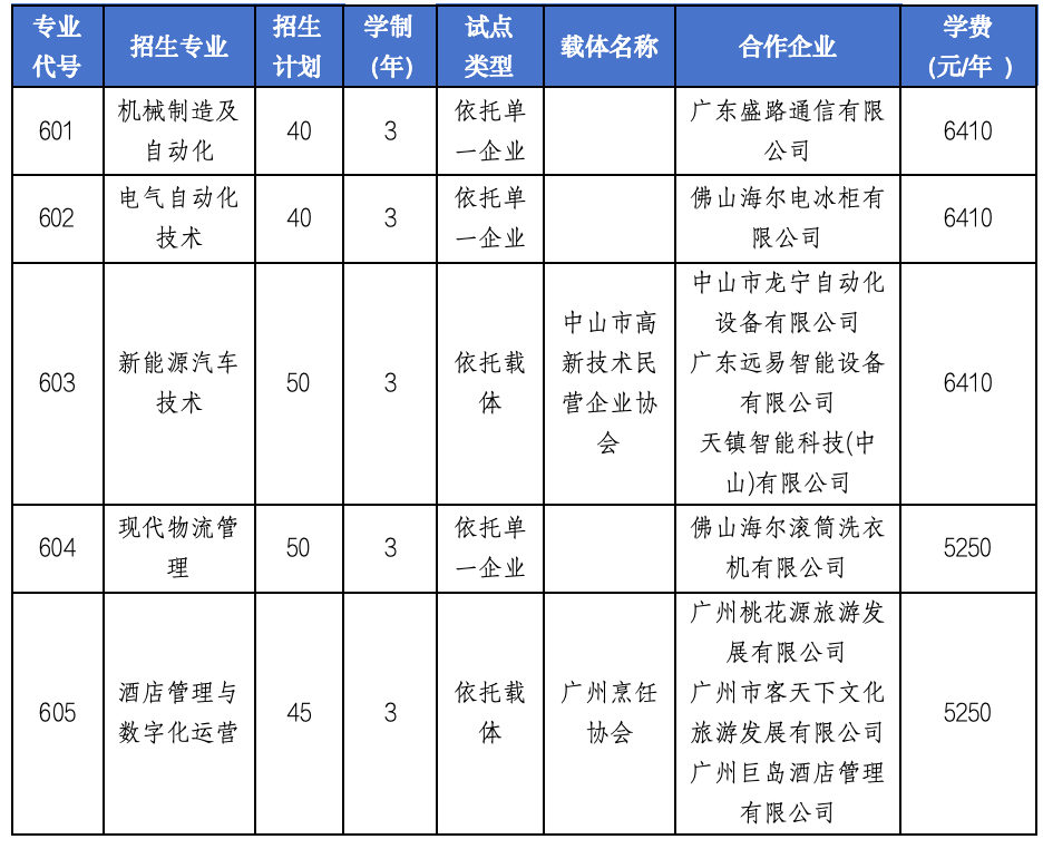 根据《广东省教育厅关于做好2025年省高职教育现代学徒制试点工作的通知》(粤教职函〔2024〕49号)、《广东省教育厅广东省退役军人事务厅关于开展2025年退役军人现代学徒制专项试点工作的通知》(粤教职函〔2025〕6号)以及《广东省教育厅关于做好2025年高等职业院校自主招生工作的通知》文件精神和要求,本校2025年自主招生有2种招生类型:普通现代学徒制试点、退役军人现代学徒制专项试点,分别招生225人和30人。