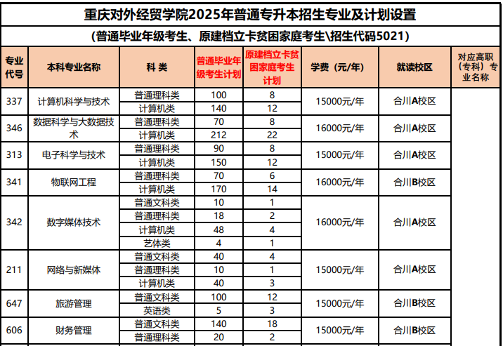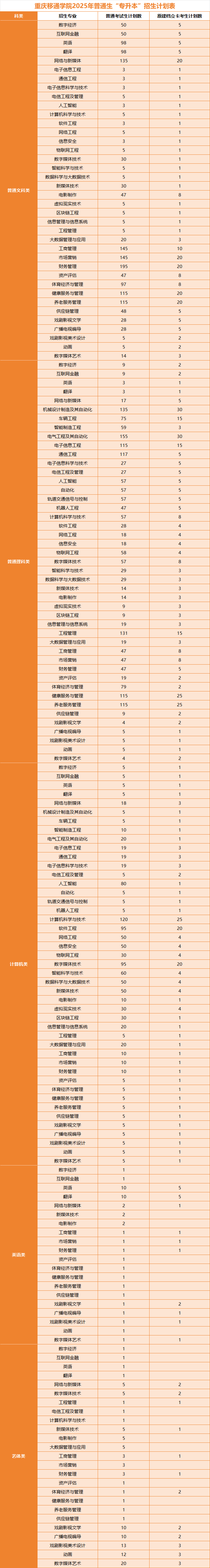 2025年重庆专升本院校招生计划出炉啦!