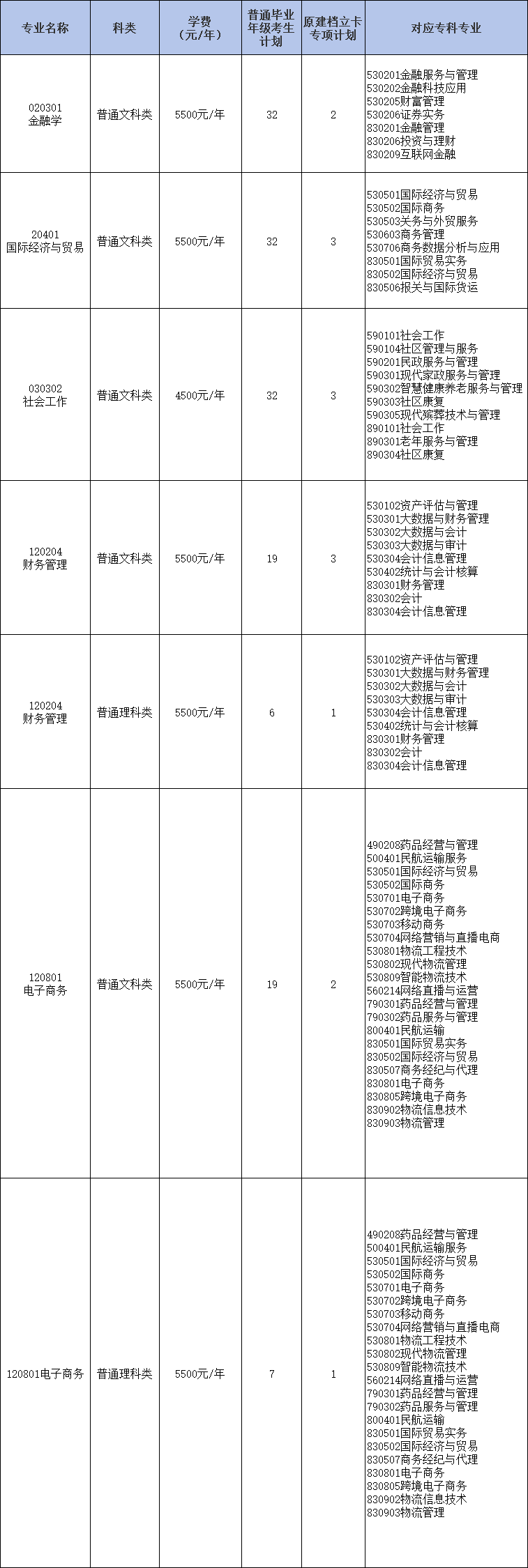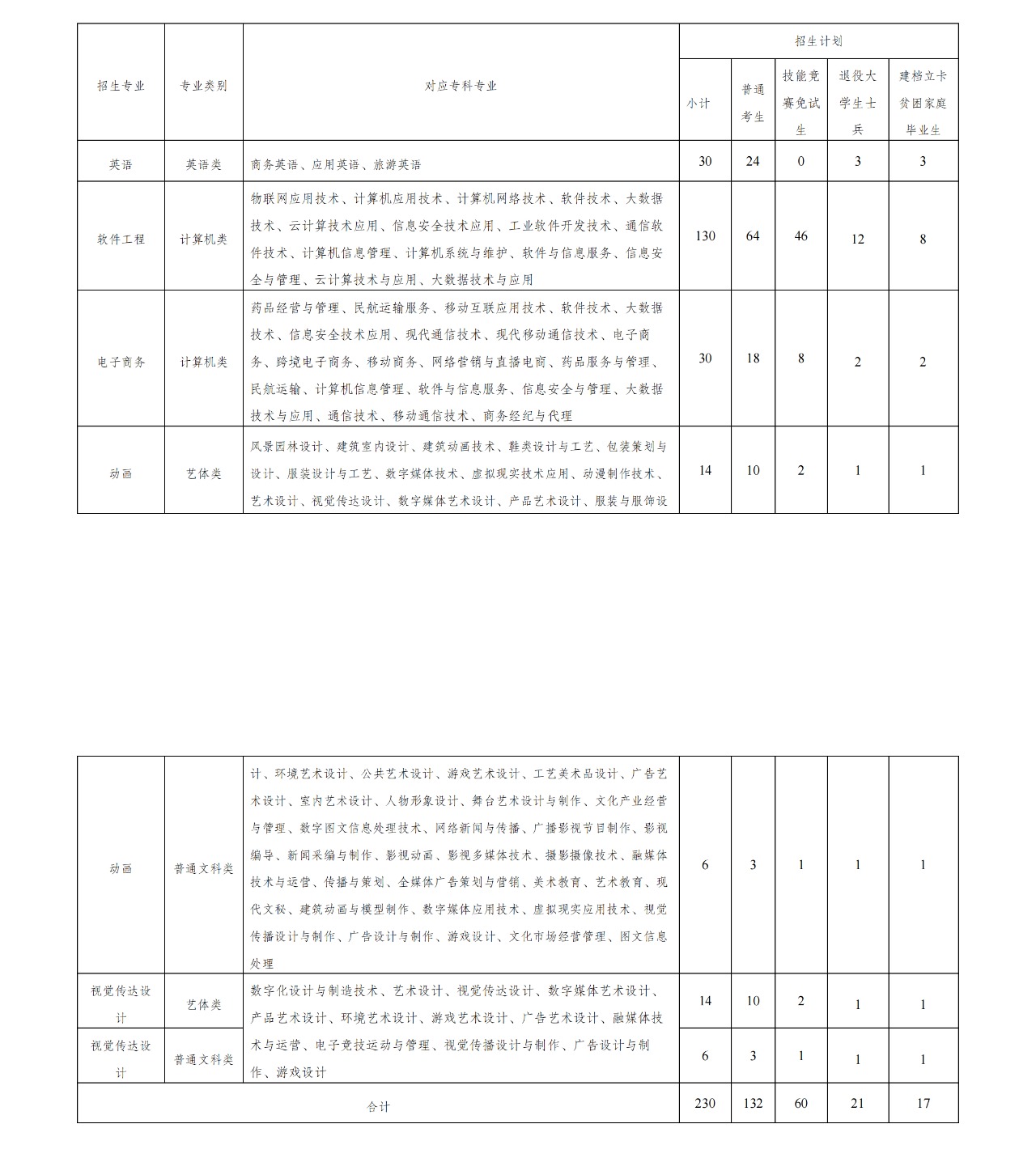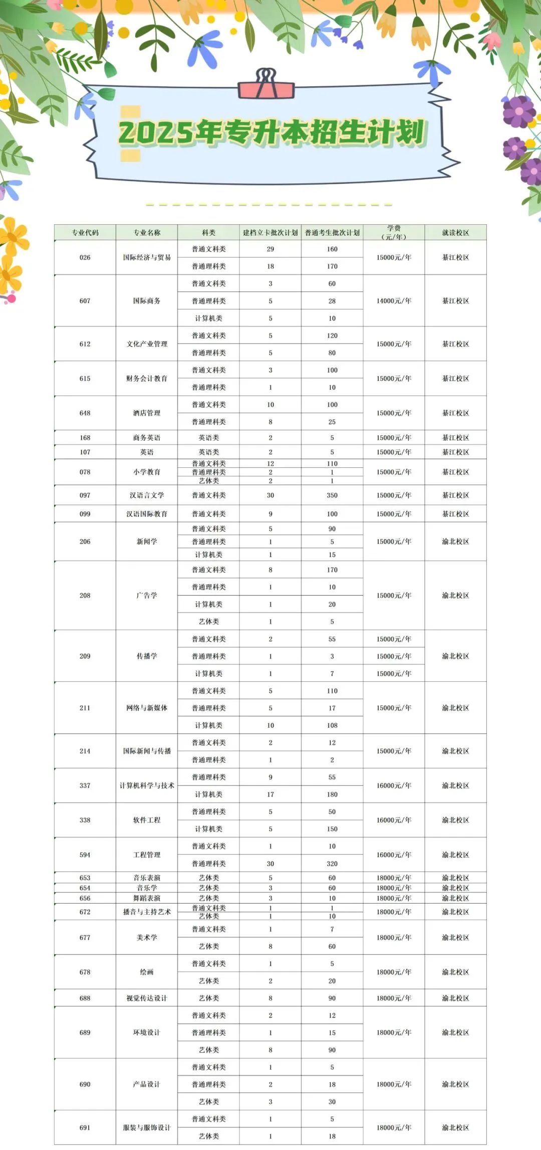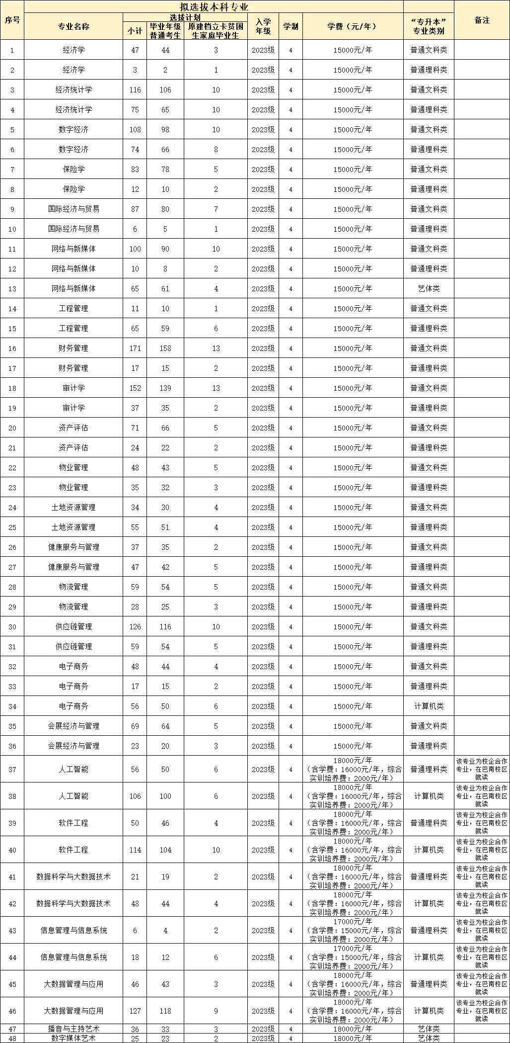 招生计划一览表