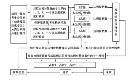 (2)检索:先对投档排序位次在前的考生所填报的专业(类)志愿从前往后依次进行检索,一旦检索到考生符合某一个专业(类)志愿的投档条件,考生所填报的后续专业(类)志愿就不再检索;该生检索结束后,系统会自动检索下一位次投档排序考生所填报的专业(类)志愿,直到本批次、本类别所有考生都完成检索。