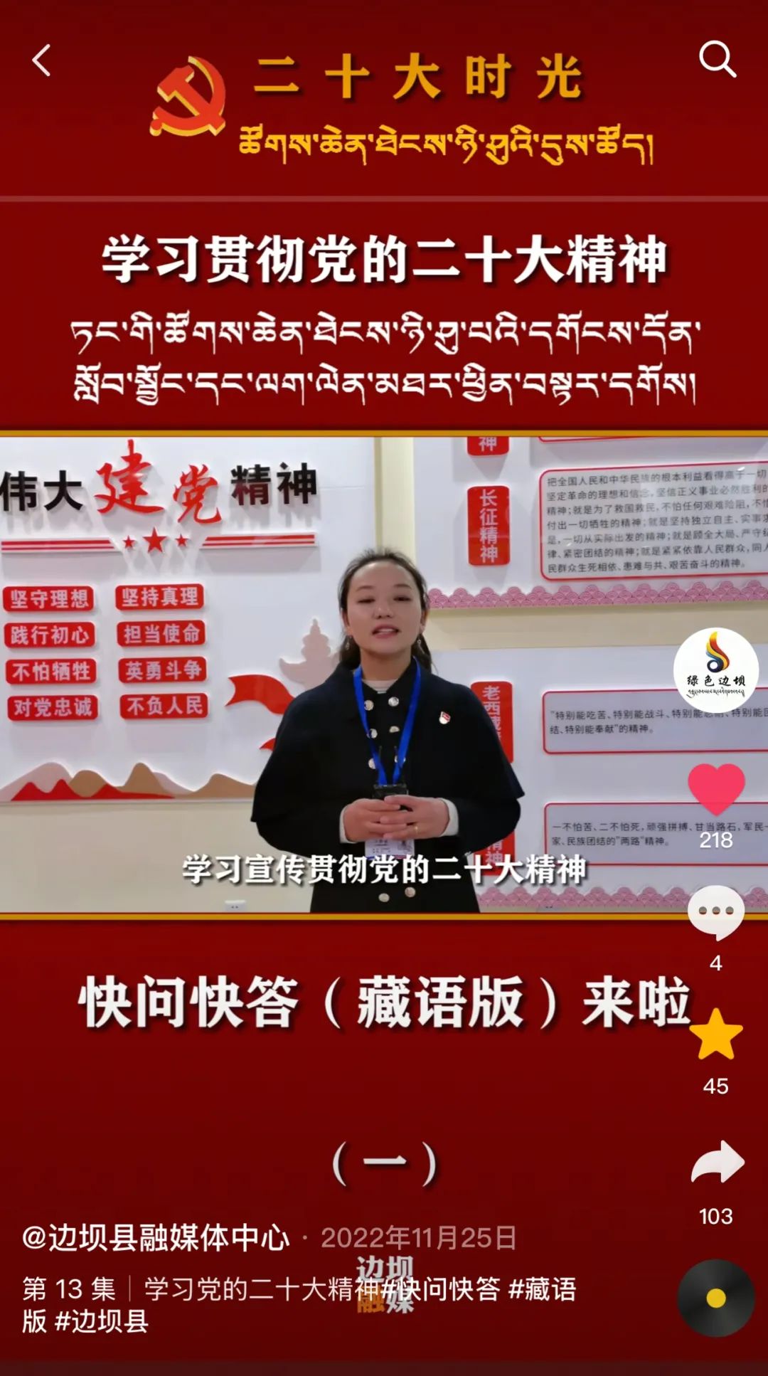 她录制了上百条藏汉双语政策宣讲视频,把党的二十大精神和法规政策“翻译”成藏区群众听得懂的乡音,让党的惠民政策“飞入雪域千家万户,架起了民族团结的连心桥”。为促进各民族交往交流交融,铸牢中华民族共同体意识贡献青春力量。