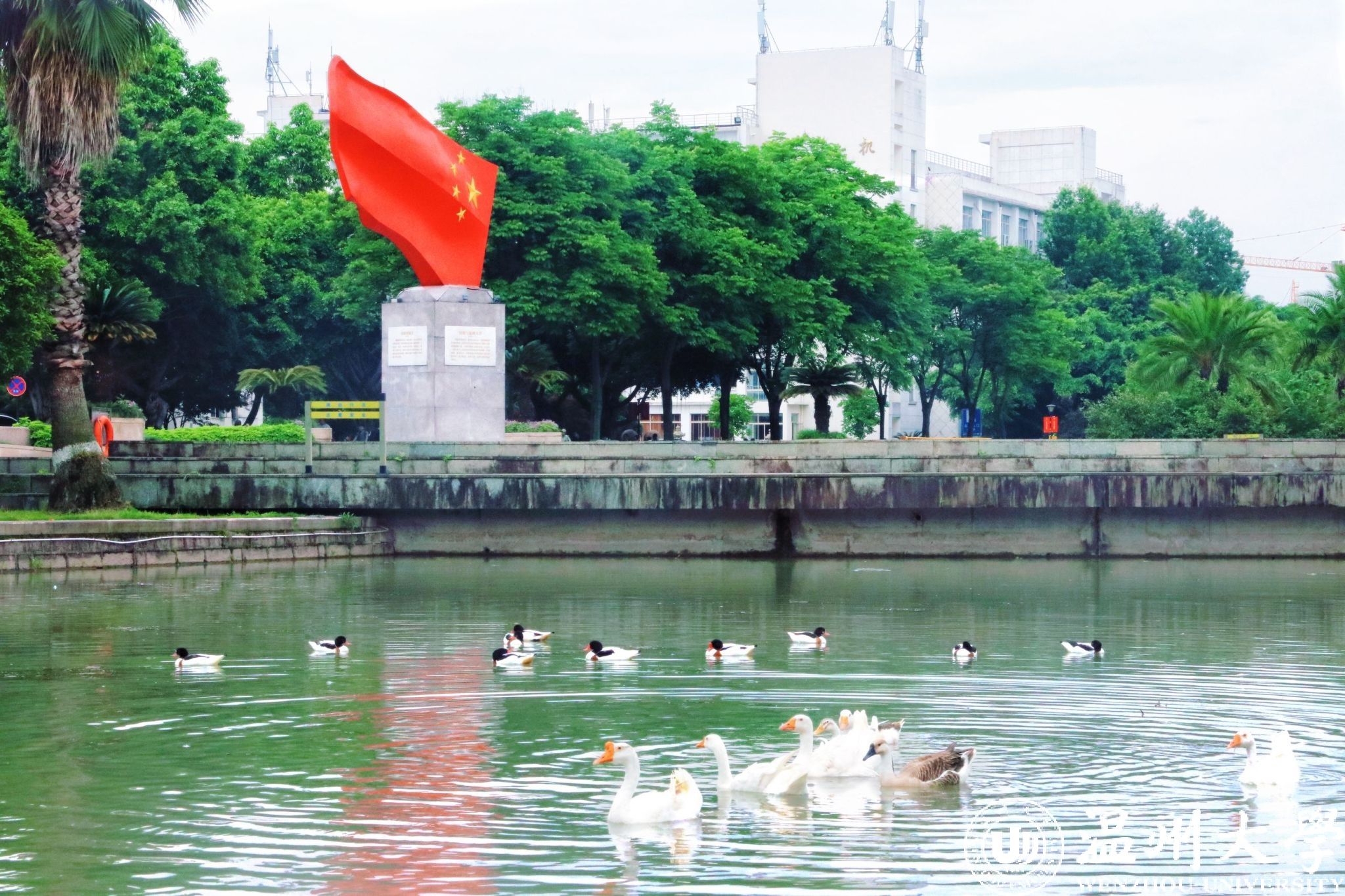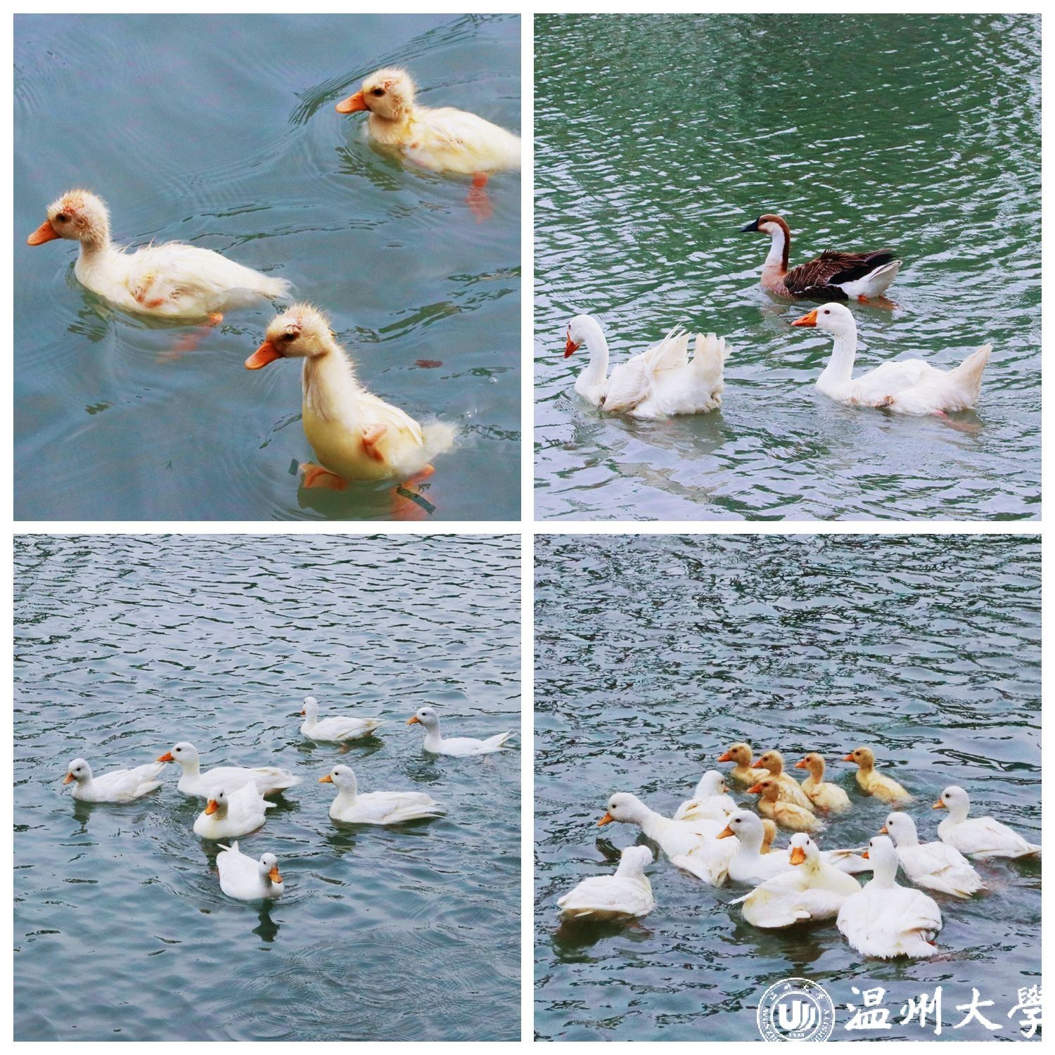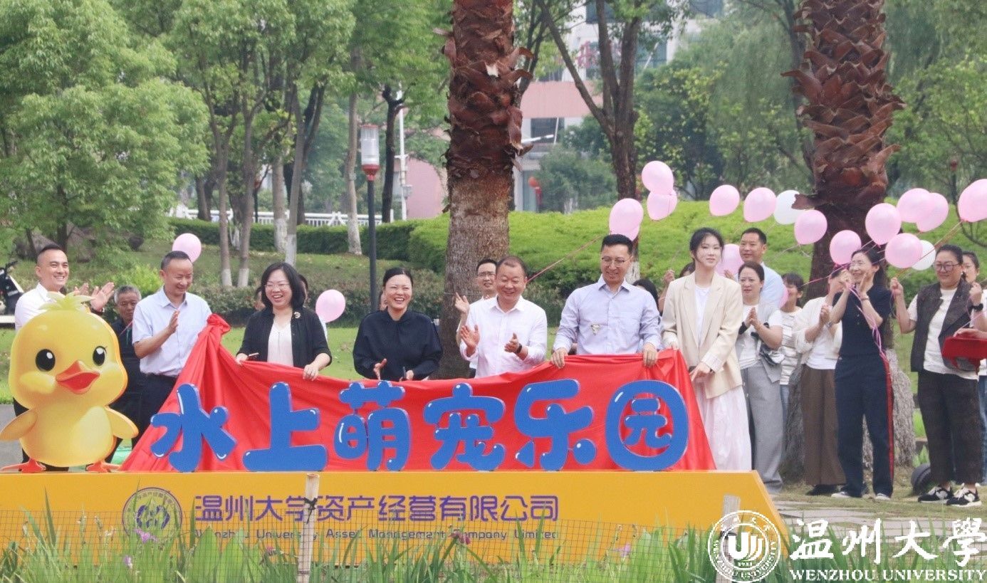 5月9日上午9时,由温州大学资产经营有限公司打造的“明心湖水上萌宠乐园”正式开园。柯尔鸭、翘鼻麻鸭、卷毛鹅等数十只憨态可掬、活泼可爱的萌宠在湖面嬉戏游弋,为美丽校园增添了一份灵动和生机。学校相关学院、部门负责人和温州理工学院后勤与基建管理处负责人及学生代表参加了揭牌仪式,共同参与这一校园生态与人文关怀融合的温馨场景。