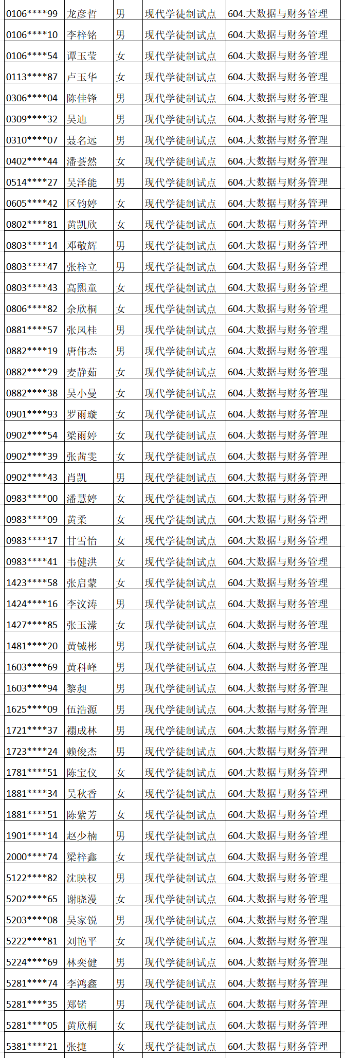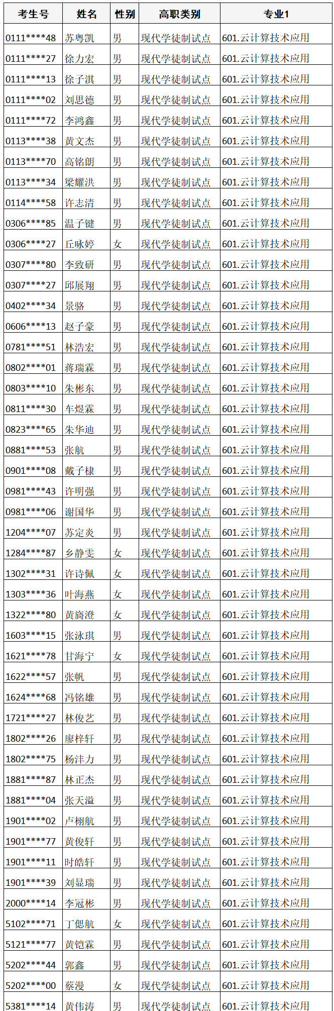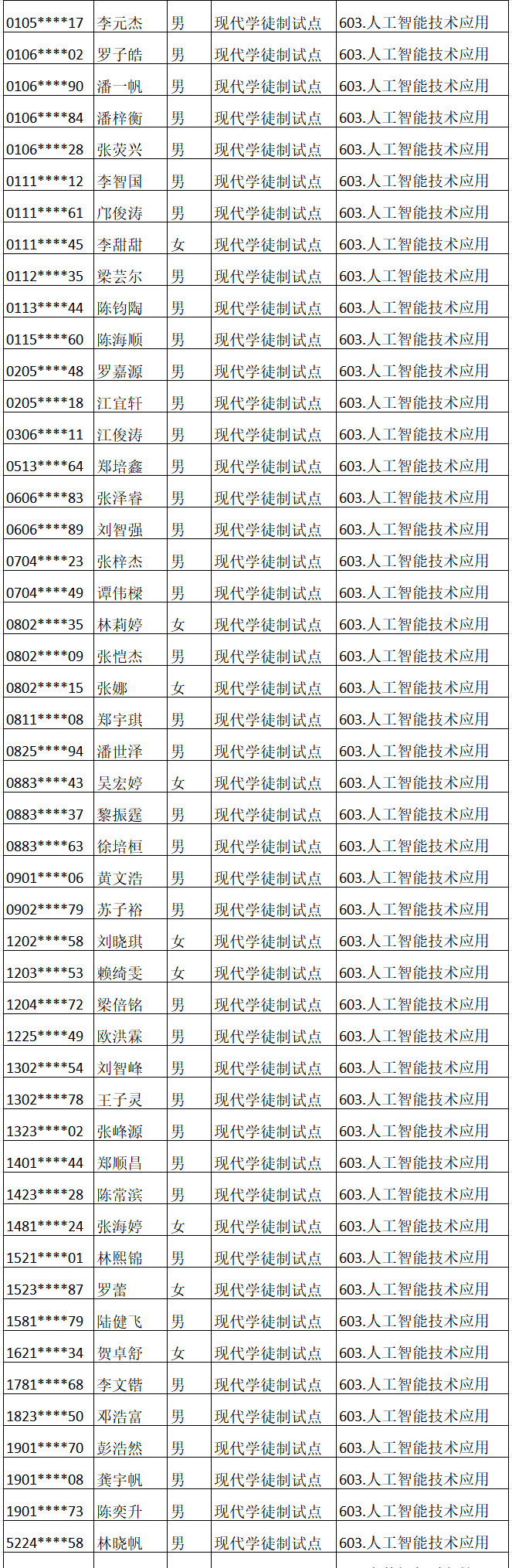 根据广东省2025年高职自主招生等相关工作文件规定,结合学校2025年普通现代学徒制试点招生简章相关要求,我校对考生报名资格进行审核,截至2025年5月10日16:00,报名资格审核通过考生共有301人,现公布获得报考资格的考生名单如下。如有疑问,请致电0763-3918858反馈,获得报考资格的考生审核通过后,须在规定时间内完成缴费,缴费时间为5月9日-5月13日。