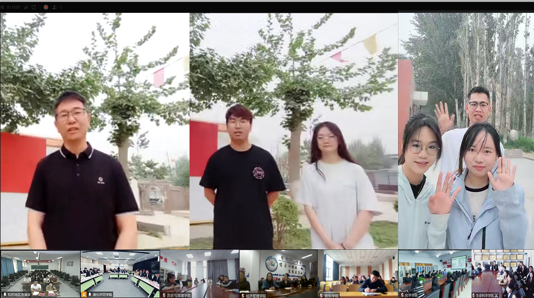 会议远程连线我校在新疆和田地区洛浦县支教实习的同学们,以及扎根新疆、建功立业的优秀校友代表恰尔巴格镇中学党支部书记刘强和优秀校友代表、校特聘驻县教师、洛浦县一中教师高小刚。与会人员认真聆听他们讲述在新疆支教、工作的亲身经历,深入了解他们扎根西部,用知识播种希望、书写青春奉献篇章的生动实践。大家还跟随镜头,与支教同学们一起,来到他们工作的校园、课堂、运动会场,近距离感受新疆青少年朝气蓬勃、丰富多彩的校园生活。这让广大师生直观而具体地理解了习近平总书记重要回信精神的深刻涵义,进一步坚定了广大师生将个人成长与服务祖国、人民紧密相连,让青春之花在祖国和人民最需要的地方绚丽绽放的奋斗豪情。