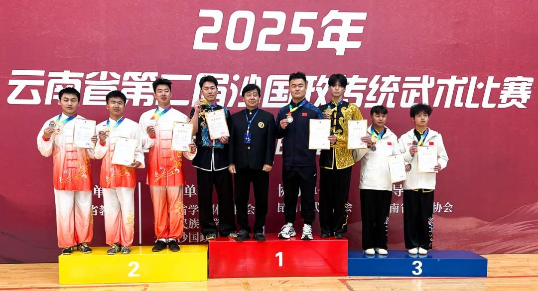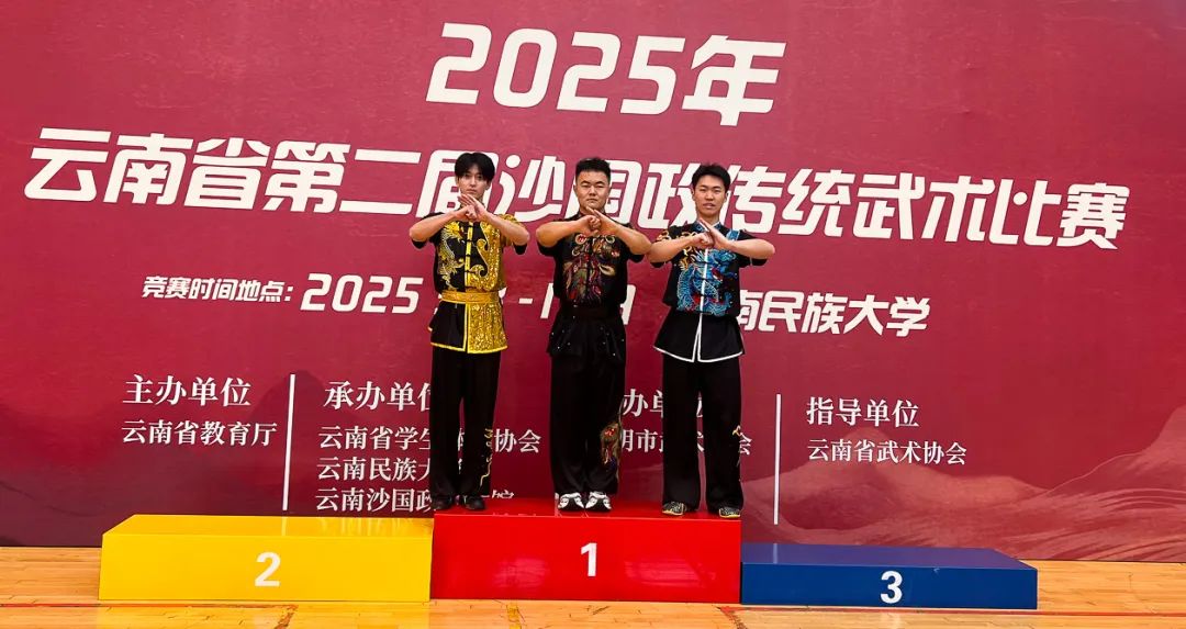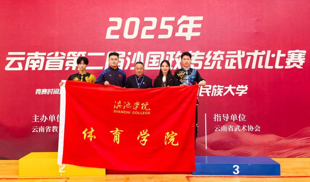 2025年5月9—11日,滇池学院在2025年云南省第二届沙国政传统武术比赛中喜摘4金。滇池学院体育学院院长秦庆峰担任领队、张妮老师带队,体育学院共派出3名队员在本赛事中获四项第一名。其中,王鸿杰获大学男子形意拳、太极拳及传统器械第一名。王鸿杰、朱祺晖、刘洋等人,获大学男子组三人对练第一名。