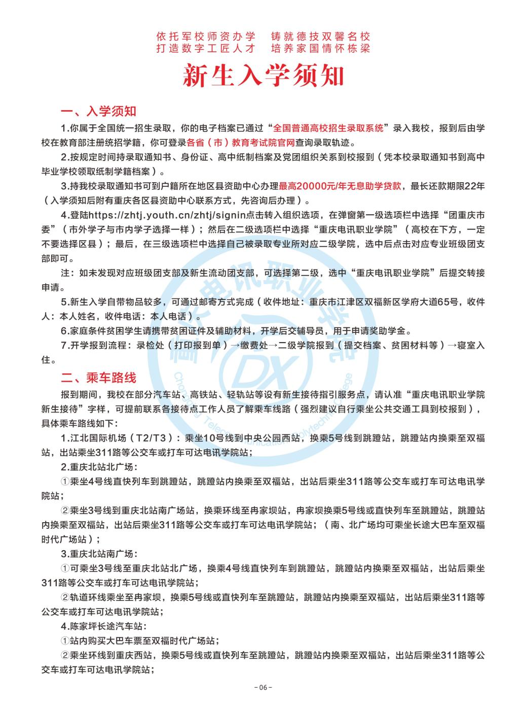 新生报到入学须知