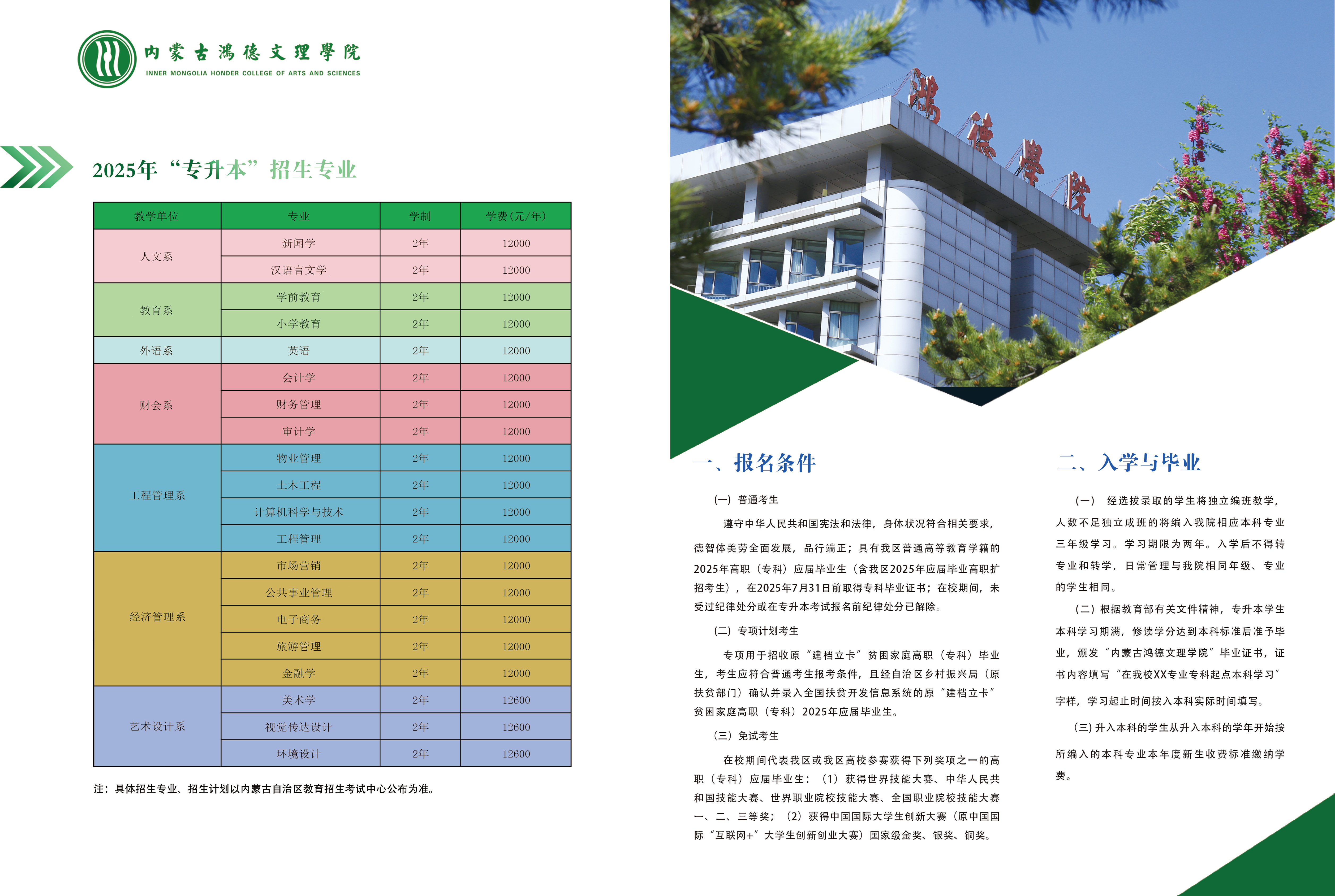 内蒙古鸿德文理学院2025年“专升本”招生简章